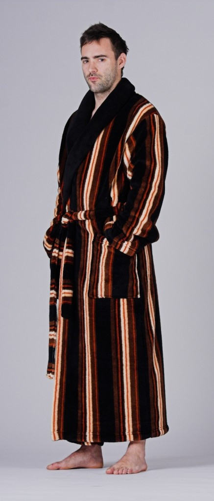 Pánský dlouhý župan v hnědo-černo-bílé kombinaci
