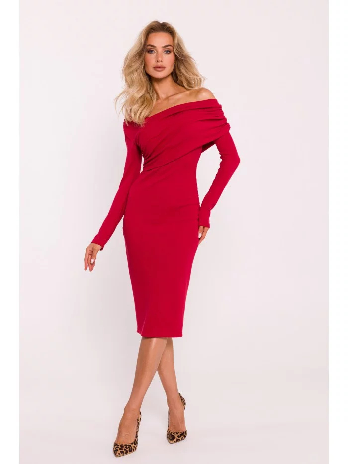 Asymetrické šaty s výstřihem M820 červené - Moe