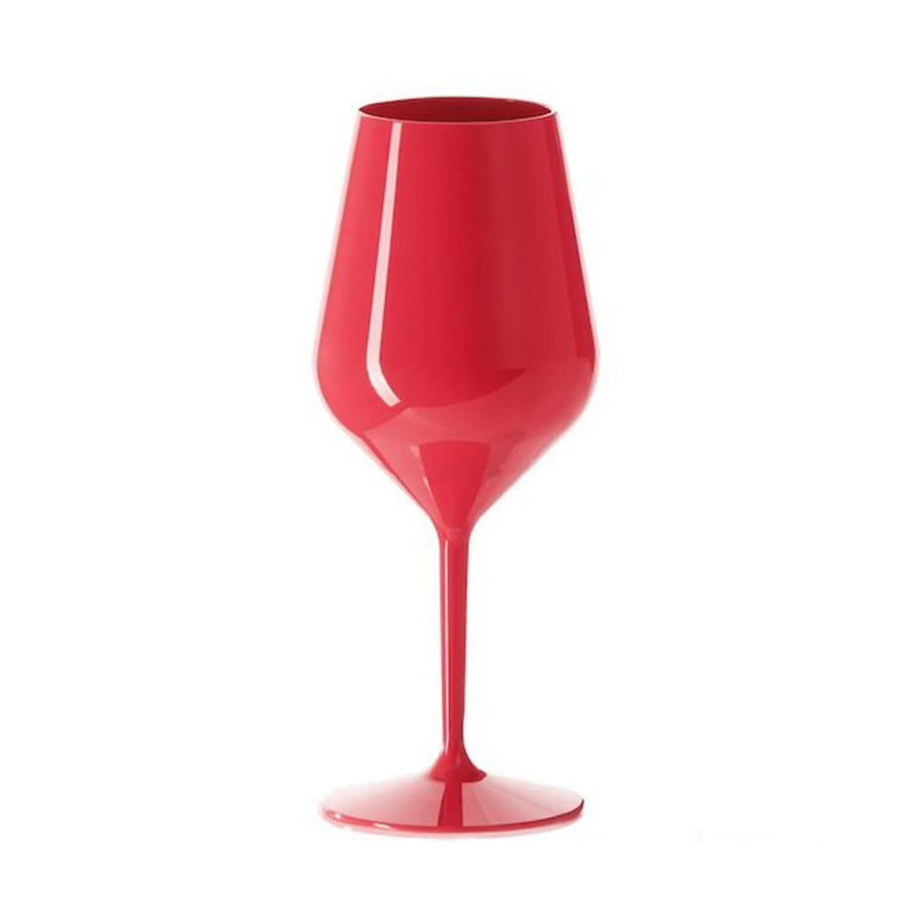 Nerozbitná plastová sklenice na víno 470 ml v červené barvě. V balení 6 ks.