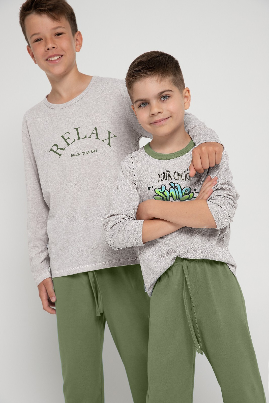 Produkt Chlapecké pyžamo 3090 SAMMY Světle béžová s tmavě zelenou - Taro prodáváme v těchto velikostech: 158a barvách béžová-zelená