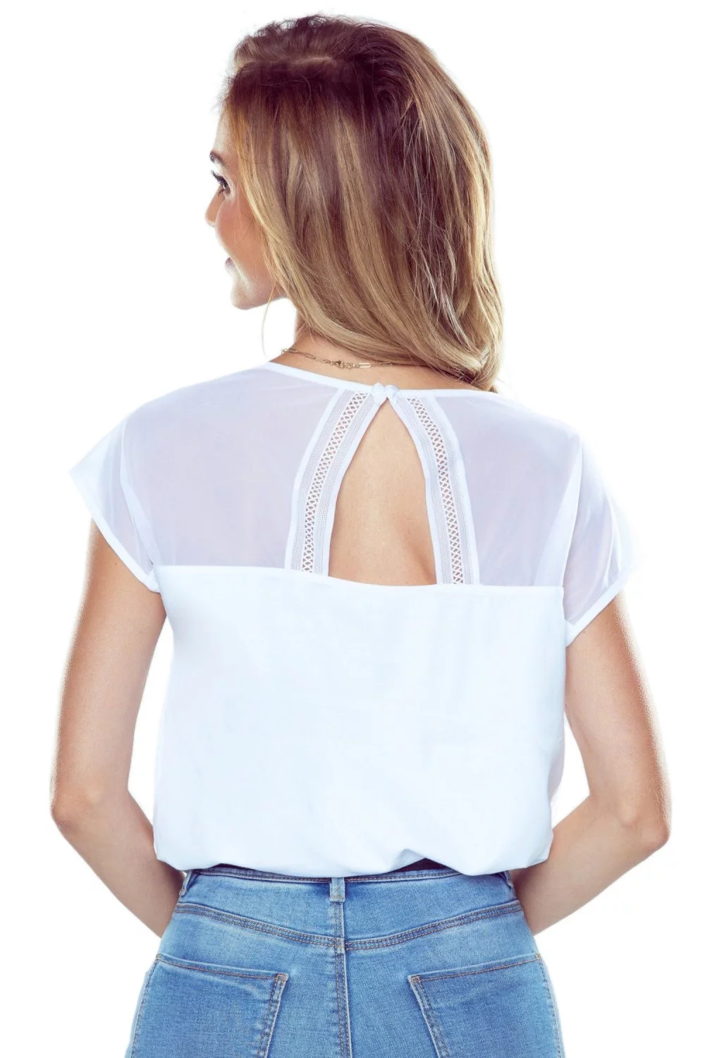 Dámská halenka Lisca Eldar - z kvalitní viskózy příjemné na dotyk - krátké rukávy z průhledného tylu - zadní část z průsvitné výšivky