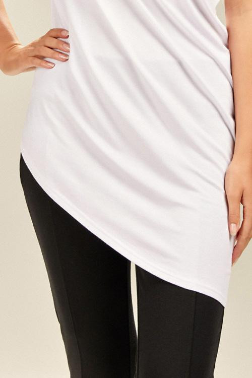 Módní dámská halenka (tunika) SHORELINE 008 typu OVERSIZE (volný střih) s krátkými rukávy v krémové barvě. Větší, šikmo ušitý kulatý výstřih kolem krku. Spodní část je šikmo střižena. Ideální na teplé večery. Vyrobeno z velmi kvalitního materiálu. Materiálové složení: 96% viskóza, 4% elastan. Velikosti: S až 3XL. Baleno v průhledném slídovém obalu. Limitovaná edice SHORELINE by Violana.
