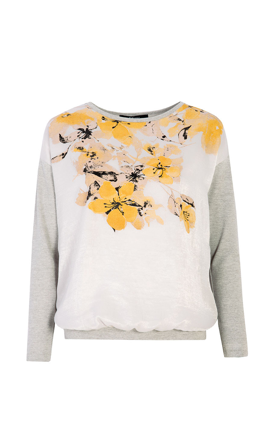 Pletená halenka s květinovým potiskem v barvách podzimního listí.