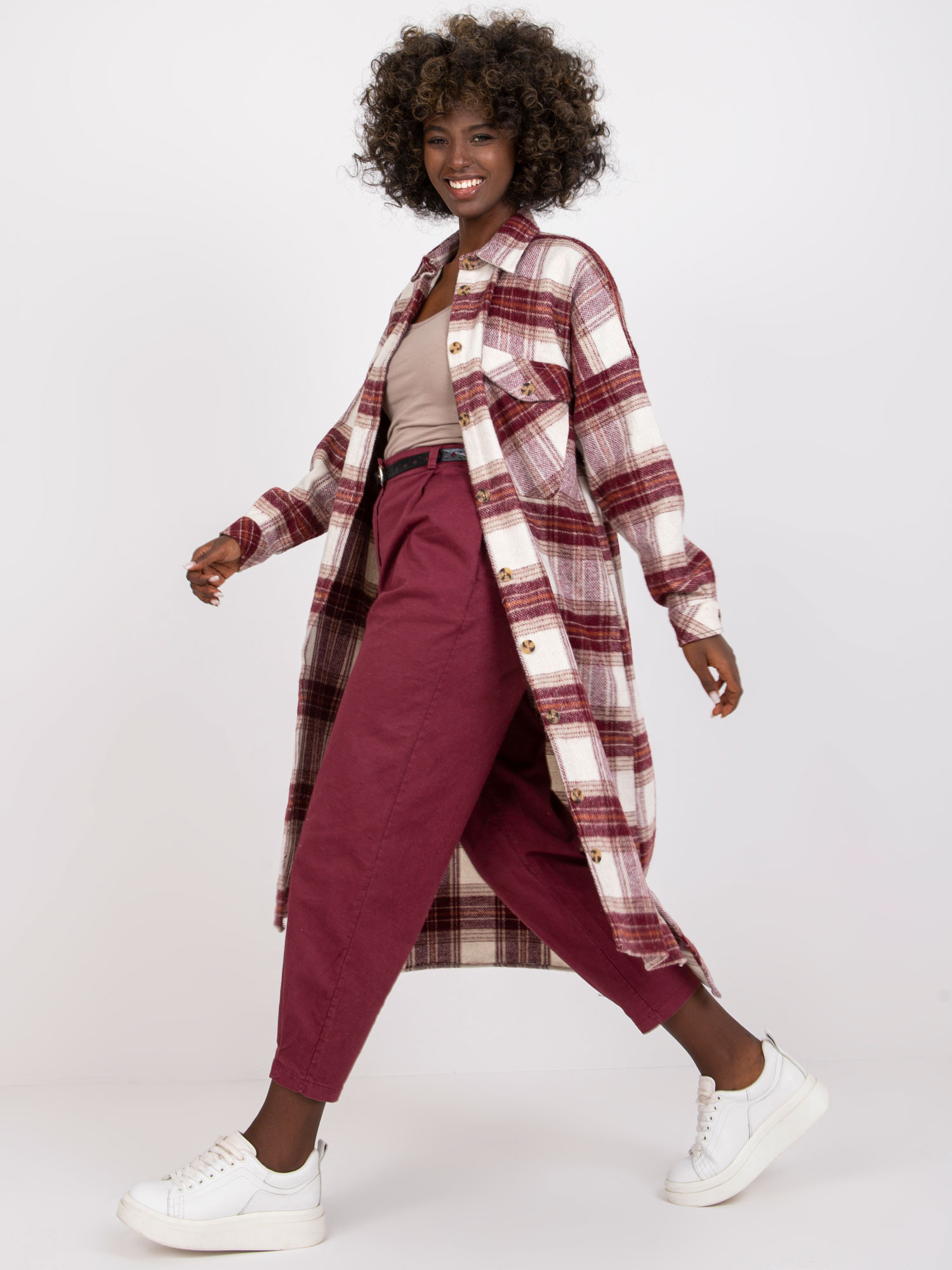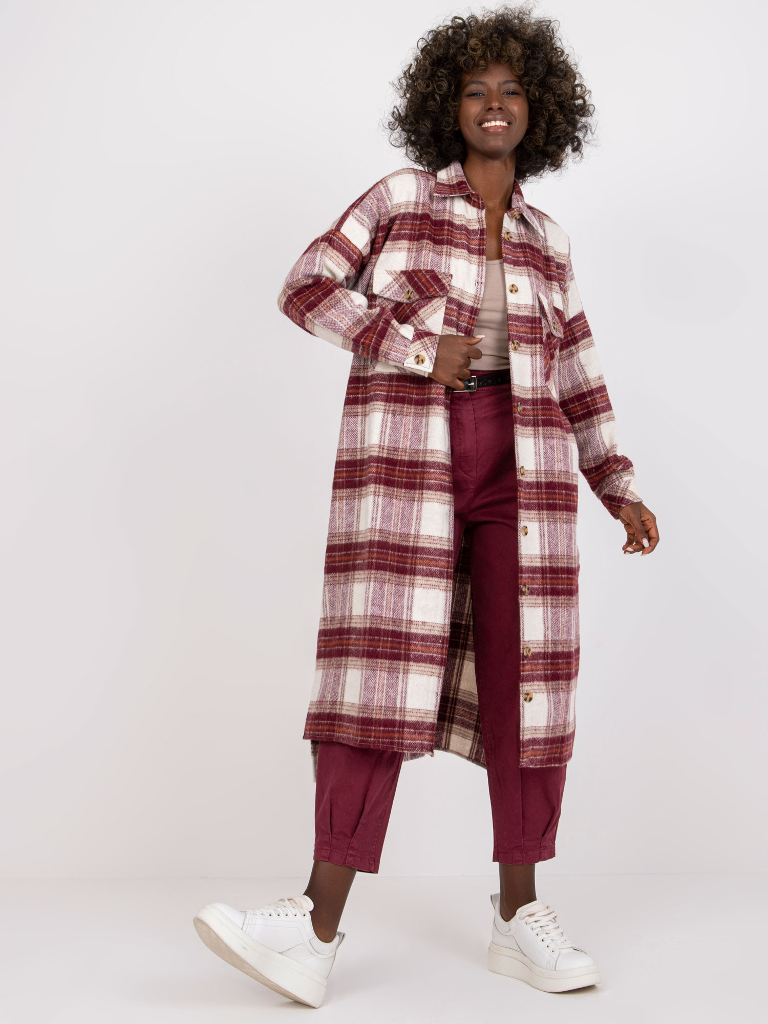 Dámská košile EM-KS-002/04.50P Ecru-vínová - FPrice