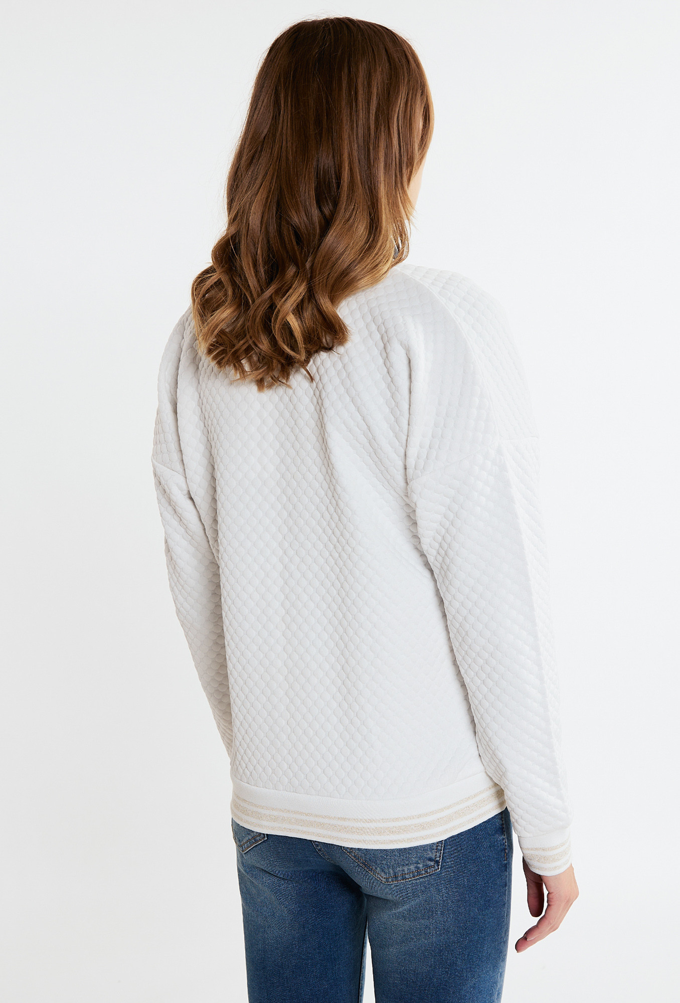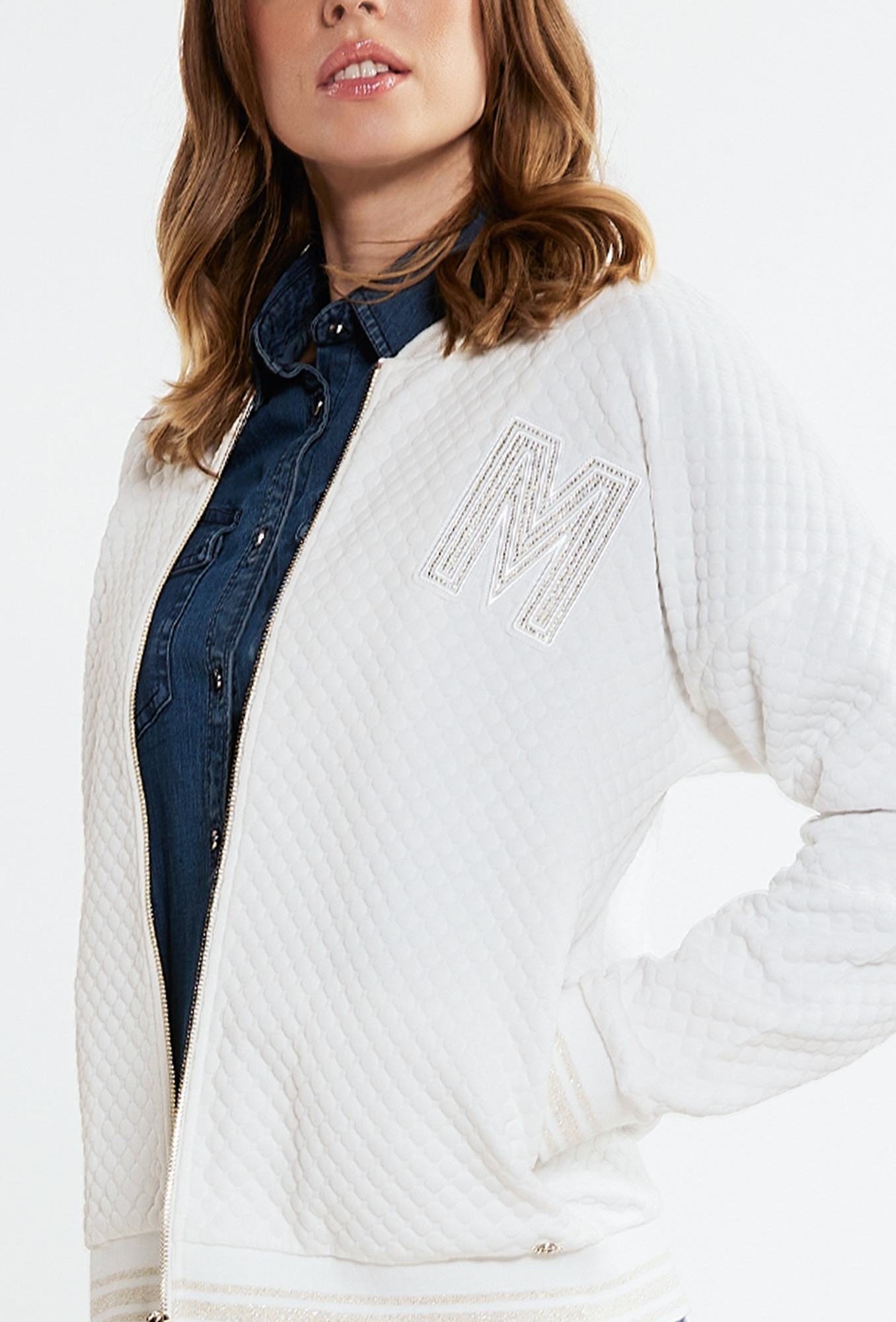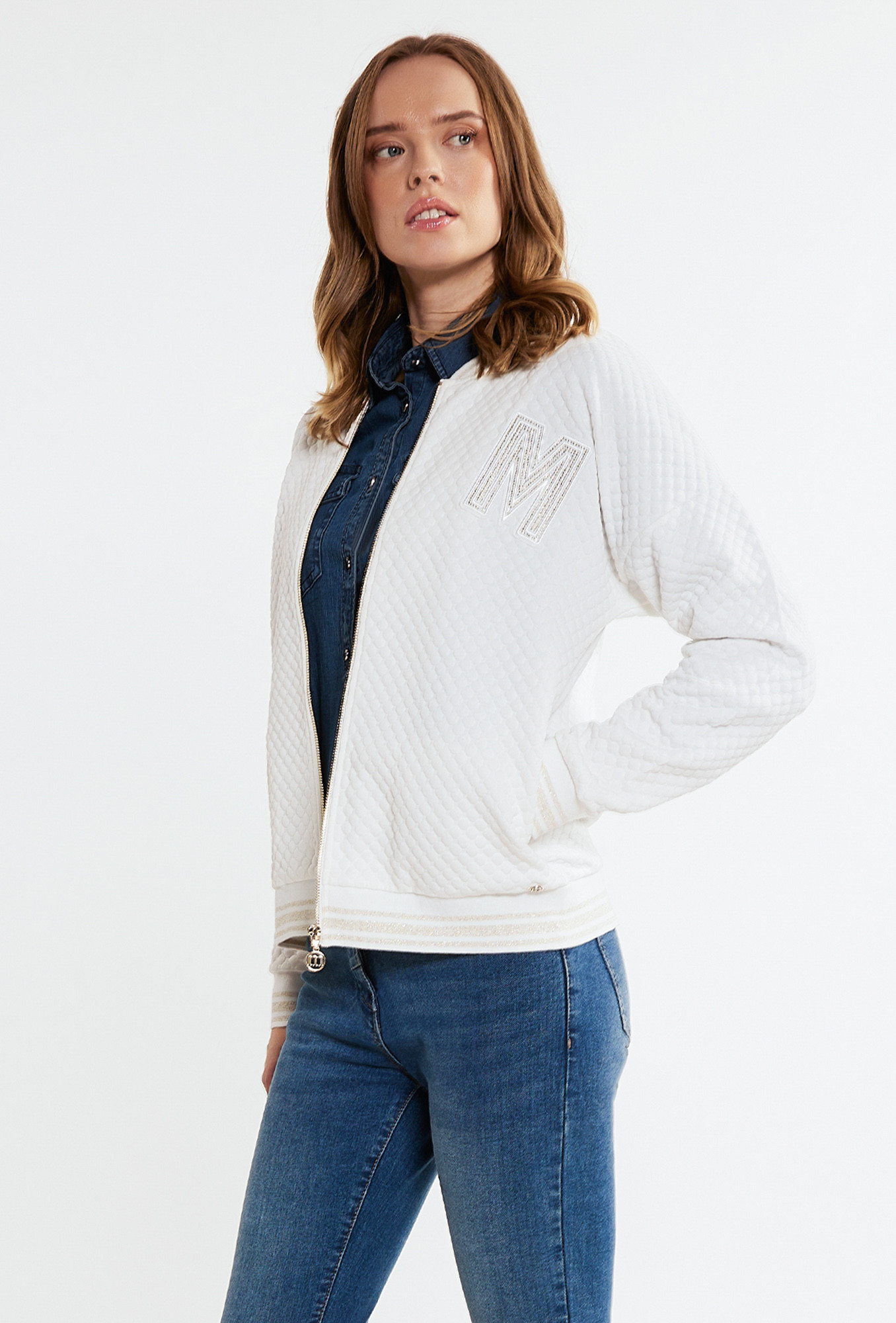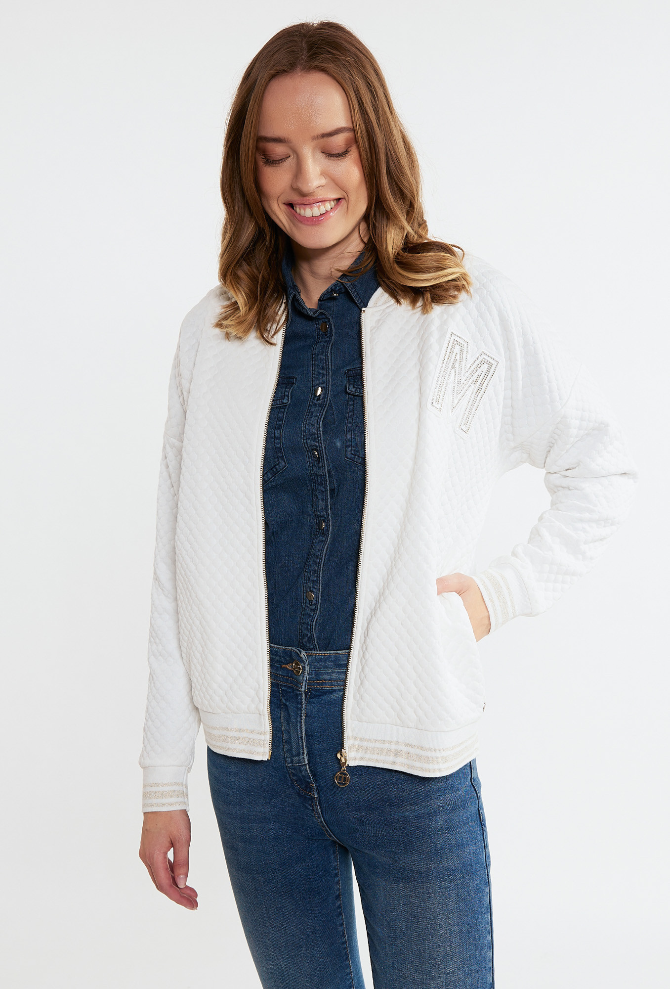 Dámská bunda s aplikací v podobě tryskového loga značky Monnari. Bunda s dlouhými rukávy, zapínání na zip. Zapuštěné kapsy na bocích. Tento model se ideálně hodí jako doplněk ke každodenní stylizaci. Modelka na obrázku je vysoká 177 cm a má velikost 36.