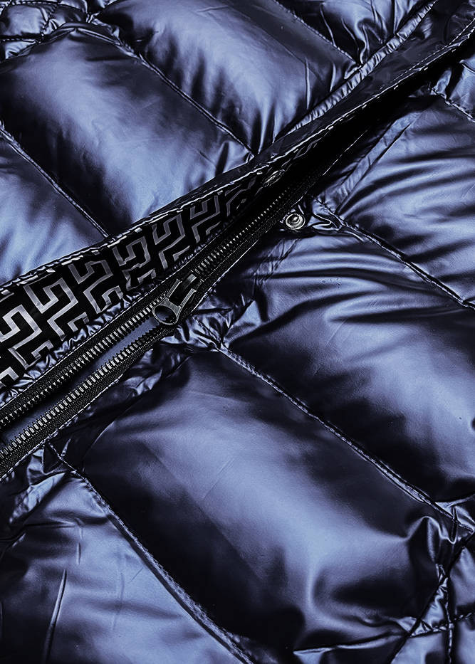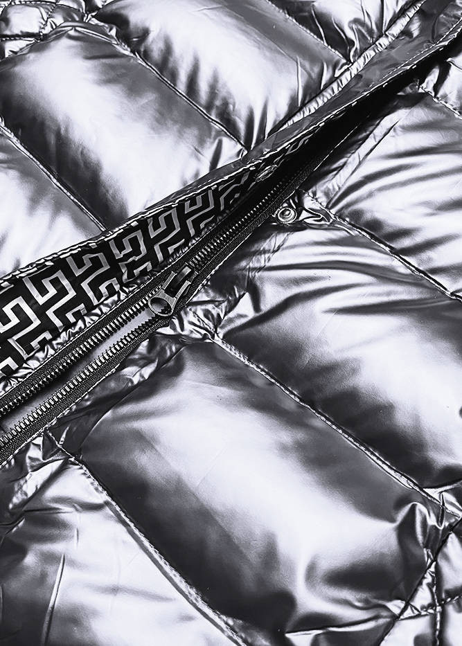 Prošívaná metalická bunda s kapucí, kterou je možné odepnout