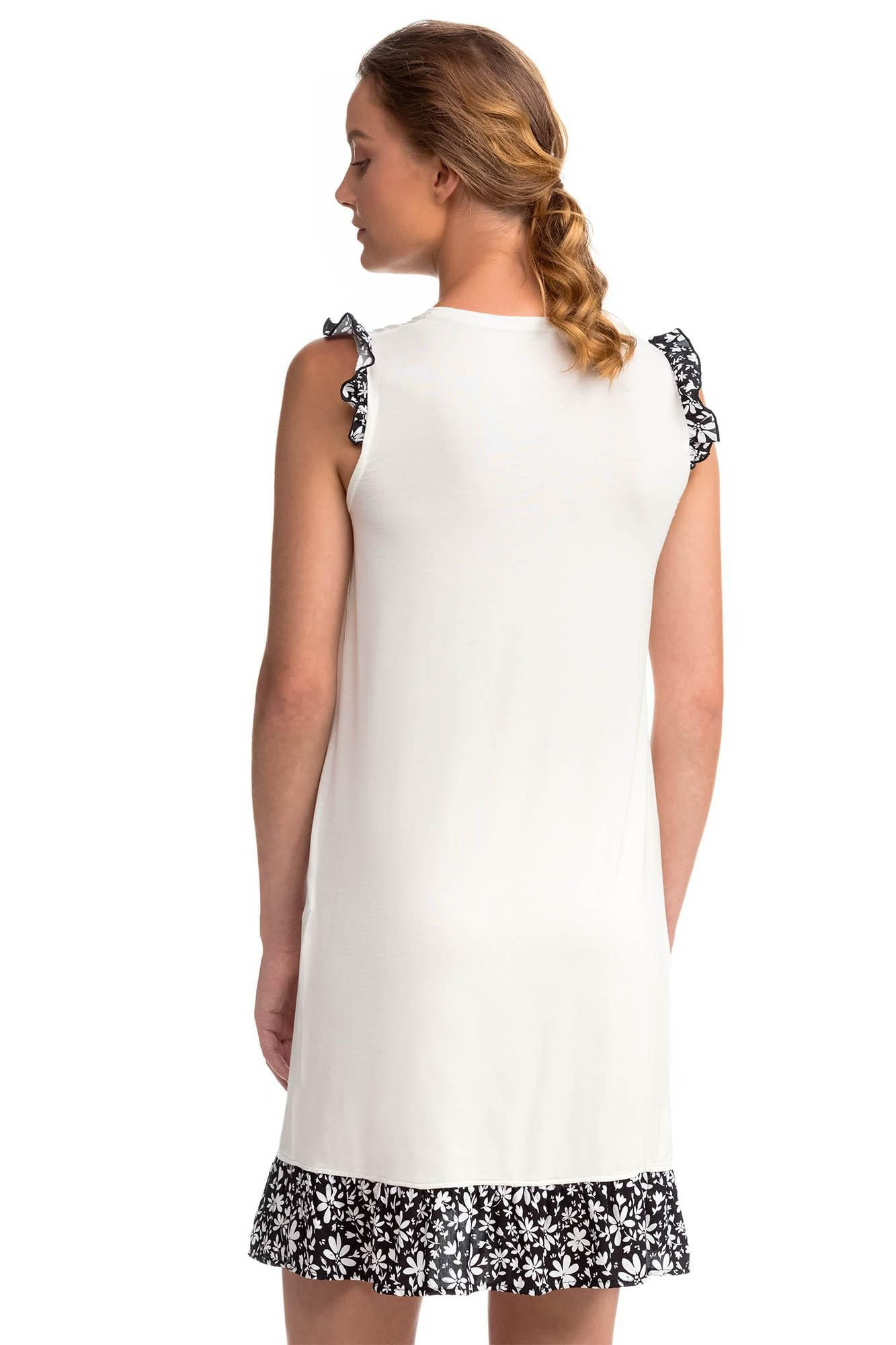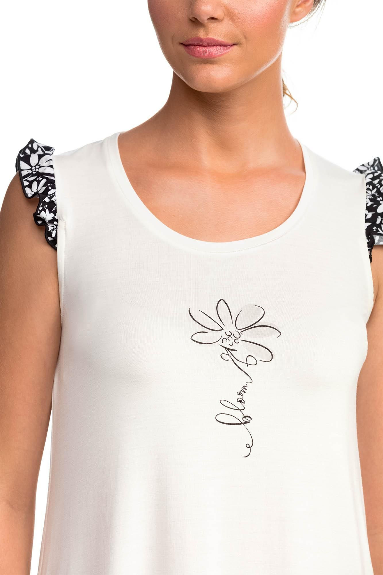 Dámská noční košile s květovým motivem kolem ramen a ve spodním okraji pro pohodu a sladký spánek. Košilka je vyrobena z popelinu a z vysoce kvalitního Micro-modalu s příměsí pružného Elastanu. Popelín je odolnou, pevnou, ale zároveň měkkou a na dotek příjemnou tkaninou, zatímco luxusní přírodní Micro-modal poskytuje vyjímečnou lehkost a pohodlí, je prodyšný, dobře absorbuje pot a rychle schne.
