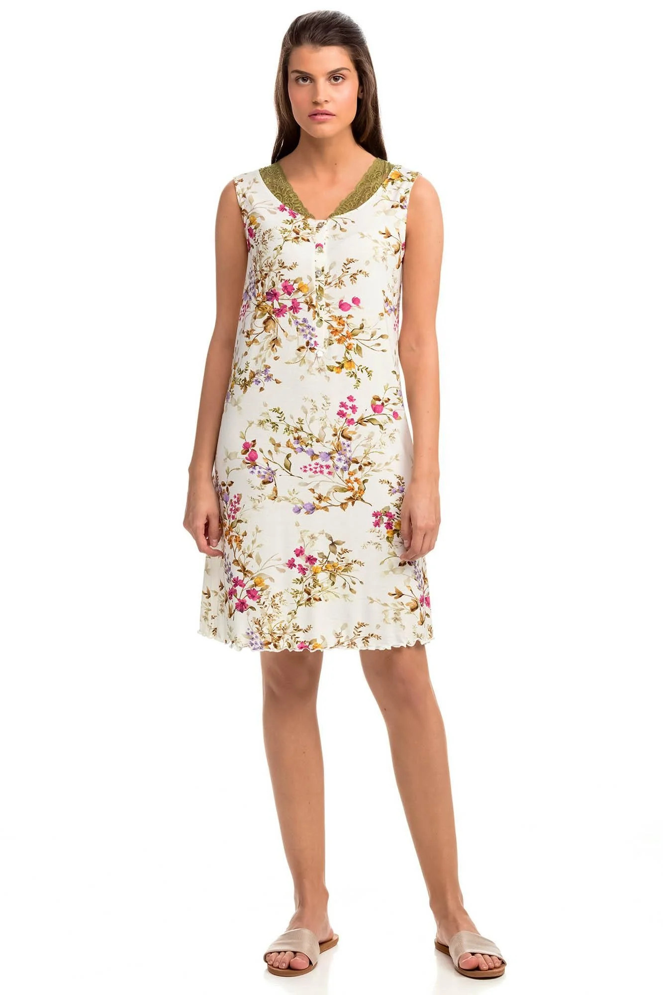 Dámská noční košile s květovým motivem pro pocit vyjímečnosti a pohodlné spaní. Noční košile je zdobená zelenou krajkou ve výstřihu a knoflíkovou légou. Je vyrobená z vysoce kvalitního Micro-modalu s příměsí Elastanu. Přírodní Micro-modal poskytuje vyjímečnou měkkost a pohodlí, je prodyšný, při praní se nesráží, dobře absorbuje pot a rychle schne, zatímco Elastan dodává oděvu potřebnou pružnost.Vhodná pro těhotné a kojící matky.