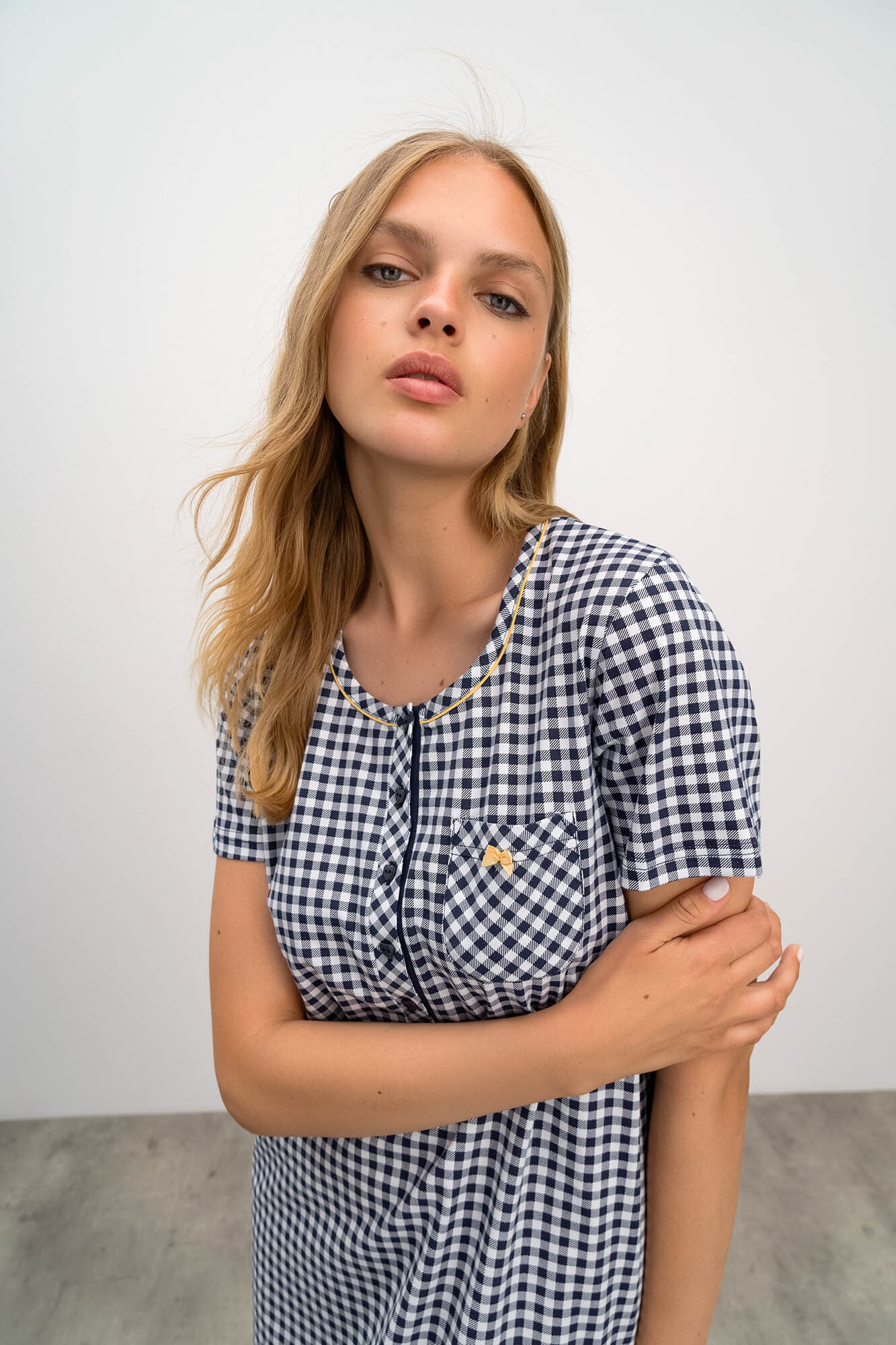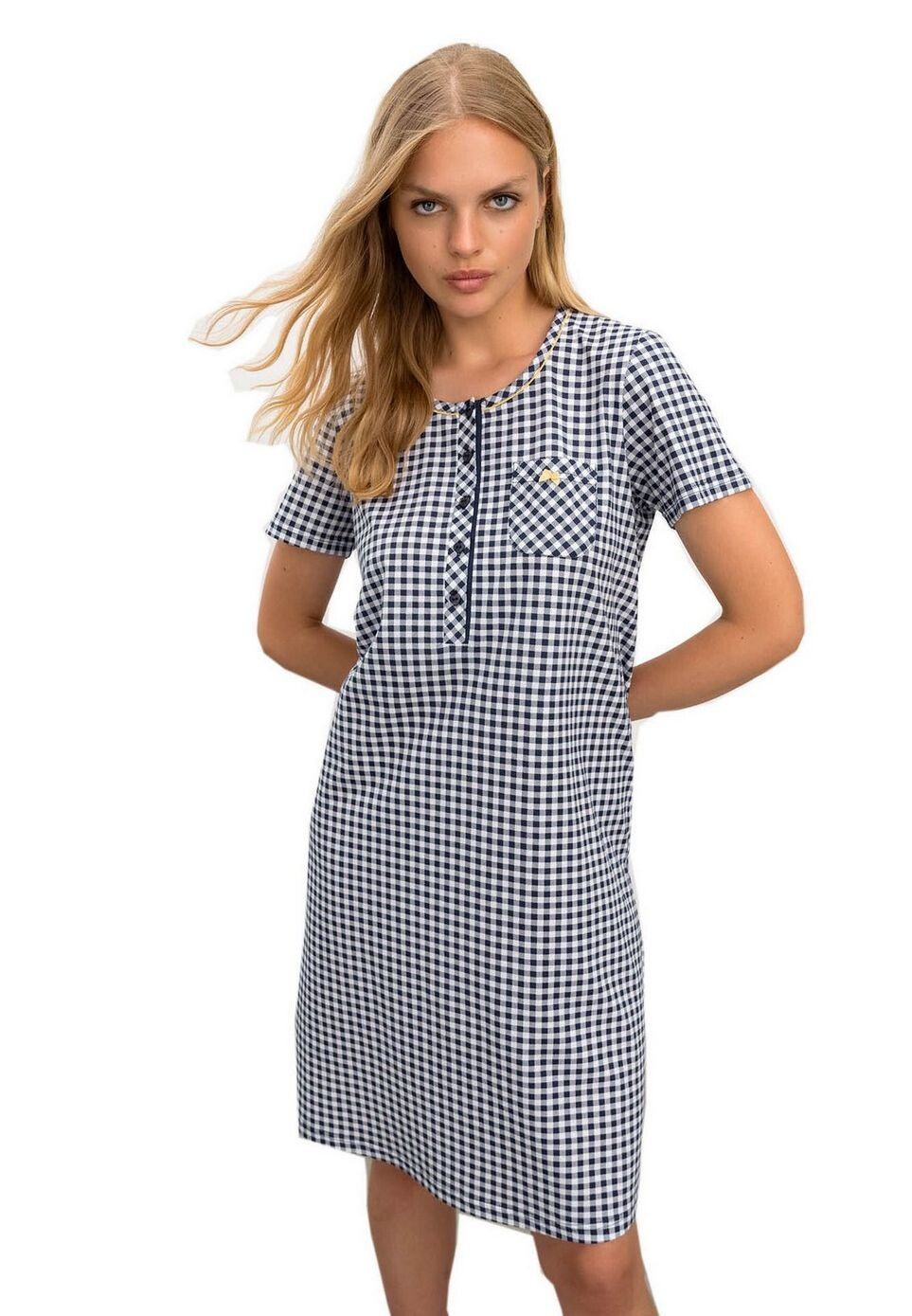 Produkt Dámská noční košile 16215-183 Tmavě modrá s bílou - Vamp prodáváme v těchto velikostech: Ma barvách modrá kostka