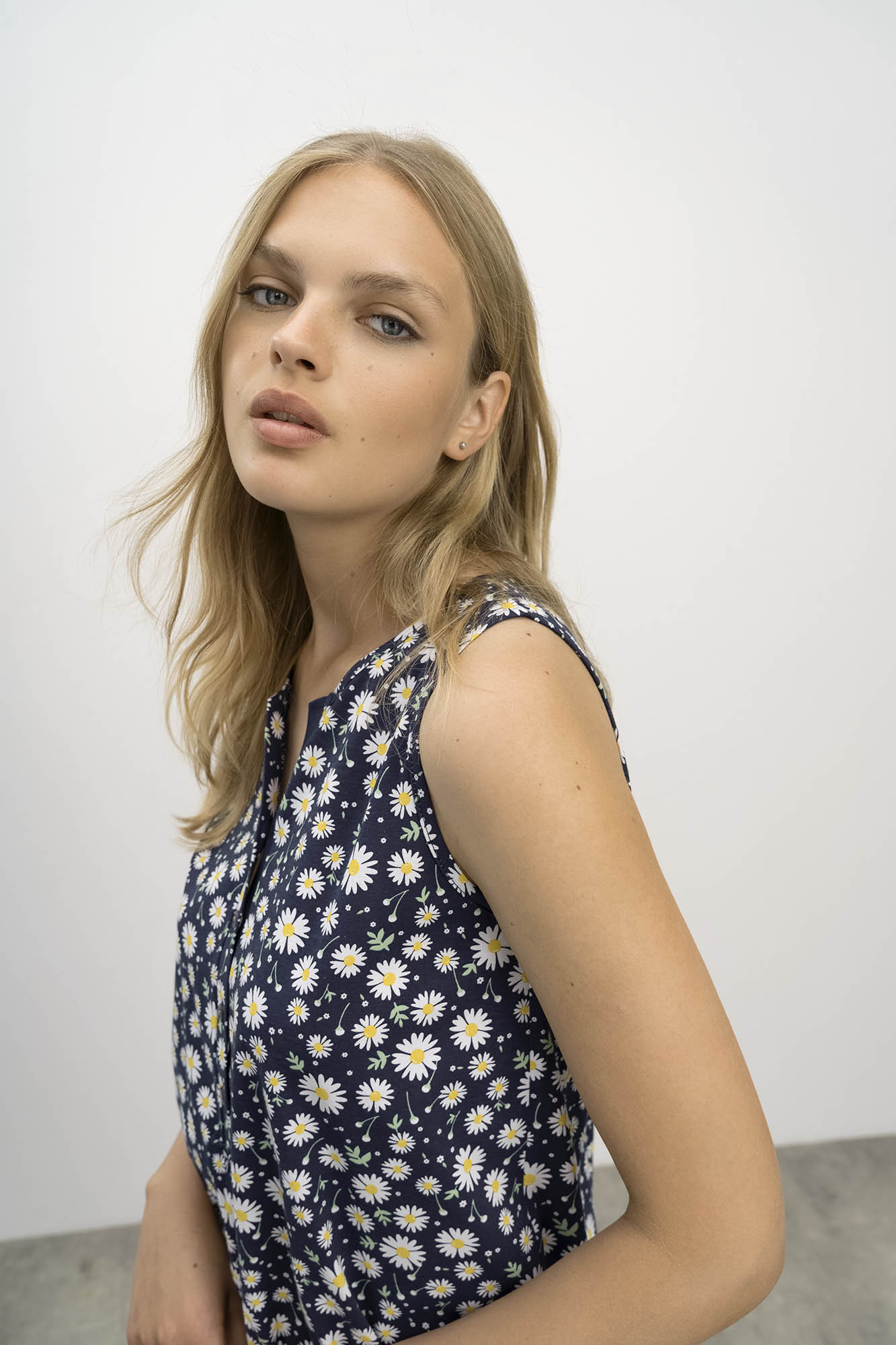 Dámská noční košile, bez rukávů, s potiskem sedmikrásek.