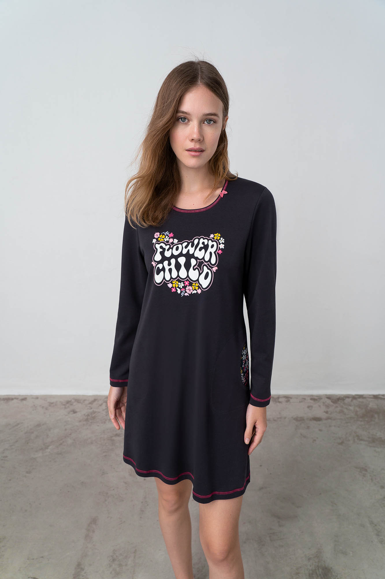 Produkt Dámská noční košile - Gwen 17460 - Vamp prodáváme v těchto velikostech: Ma barvách černá-potisk