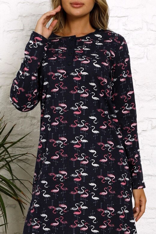 Přidání recenze k Dámská noční košile K13023 tm. modrá s plameňáky - La Penna