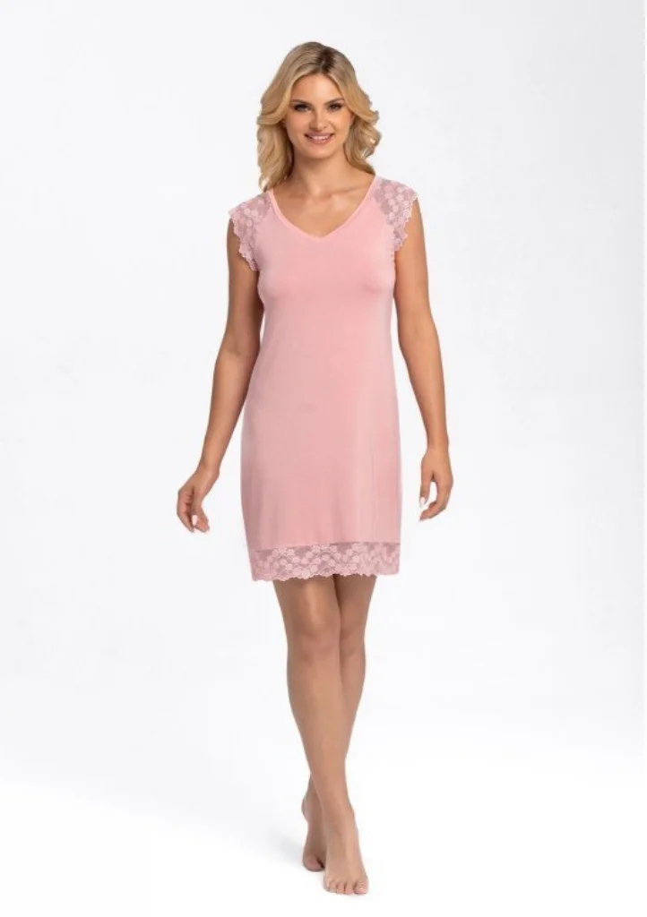 Produkt Dámská noční košilka Naomi Pinie růžová - Babella prodáváme v těchto velikostech: XLa barvách pudrovo-růžová