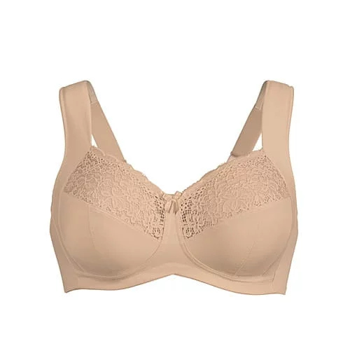 Pohodlná, měkká podprsenka bez kostic značky Anita, určená pro ženy s velkými prsy. Vyrobená z květinové, elastické krajky podšité elastickým tylem a příjemného mikrovlákna. Zvláště široká, měkce podšitá ramínka zmírňují tlak na ramena a oblast krku a zajišťují nejvyšší komfort nošení. Třídílná konstrukce košíčků v kombinaci s bočním tvarováním umožňuje pěkně vymodelovat i ta nejnáročnější prsa. Podprsenka s vysokou funkčností při zachování estetických hodnot.
