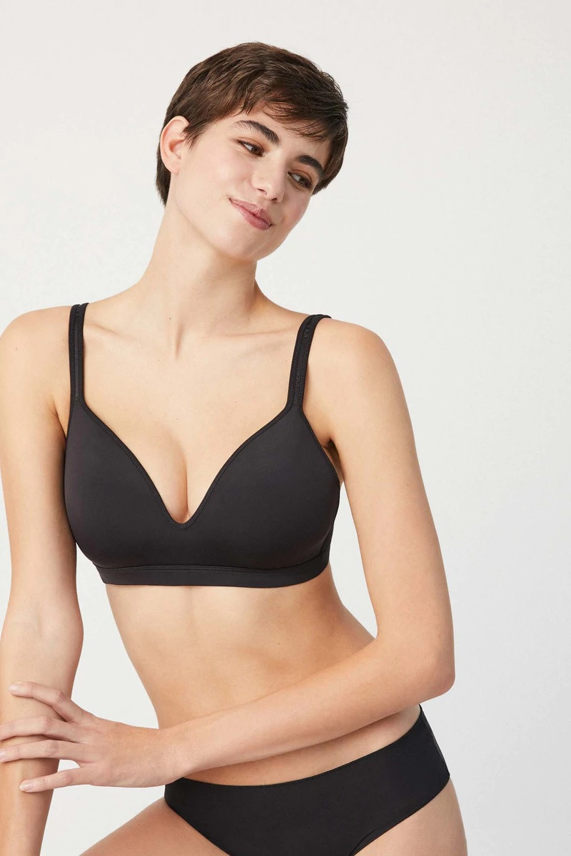Dámská podprsenka bez kostice, vyztužená, hrubší ramínka na posouvání.