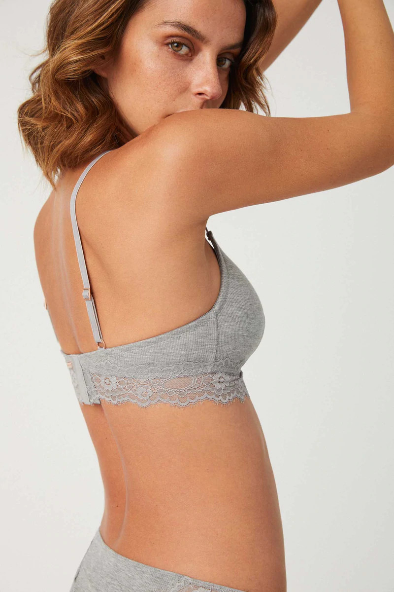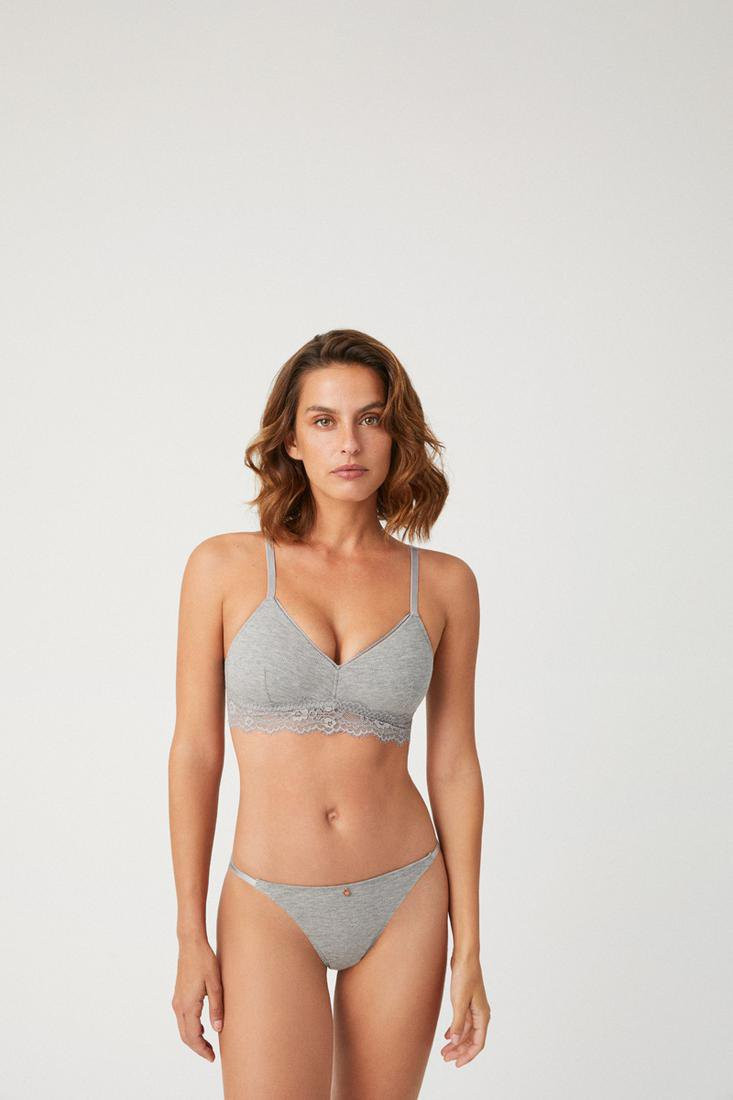 Dámská podprsenka s vrubovaným vzorem, spodní díl krajka. Ramínka na posouvání.