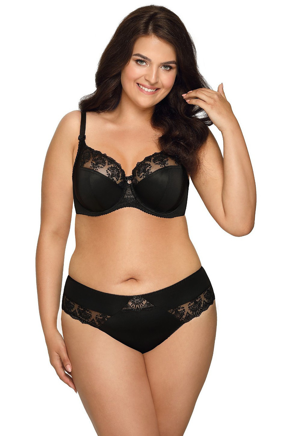 V horní linii modelu je tylová síťovina ozdobená květinovým motivem. Díky bočnímu panelu tento model stabilně nadnáší poprsí. Ramínka není možné odepnout. Šířka ramínek závisí na velikosti a rozměru podprsenky. Spojení košíčků a ramínka zdobí saténové mašličky. Podprsenka má střih a konstrukci typu 1130.