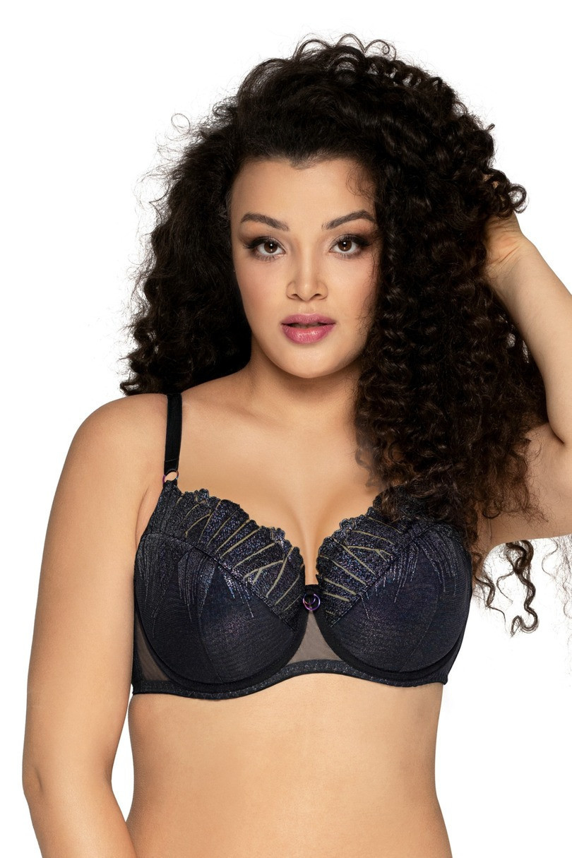 Podprsenka má ověřenou konstrukci K-924. Košíčky jsou vyrobené z velmi kvalitní pěny a jsou pokryté bavlnou. Vnější stranu košíčků pokrývá černý tyl s neobyčejnou výšivkou. U ramínek a u můstku jsou kulaté opalizující ozdoby, které pěkně dotváří celý model.