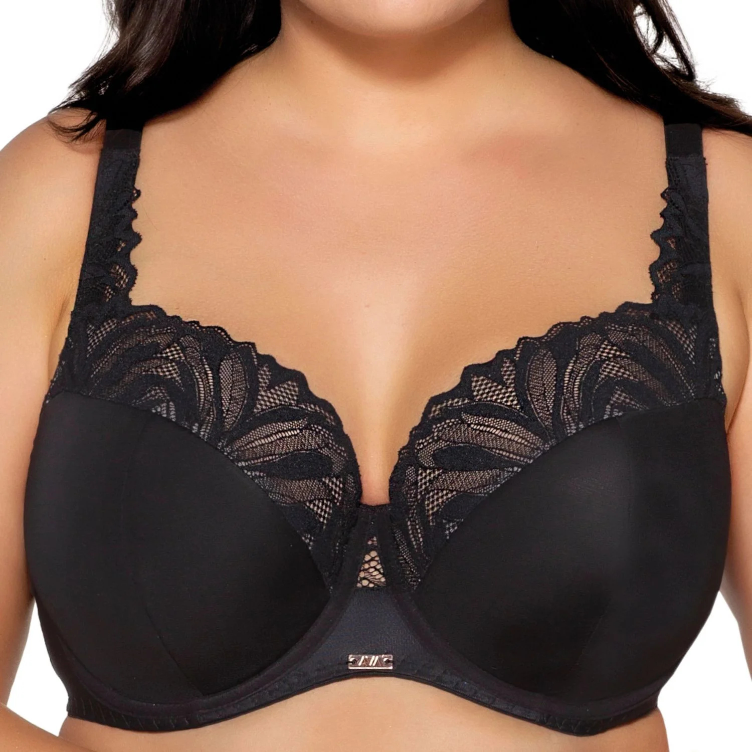 Dámská podprsenka 2107 Yasemin black AVA - černá barva - plné košíčky - vrchní část košíčků zdobené krajkou - podšité bavlnou - vyztužené kosticemi - nastavitelná a neodepínatelná ramínka