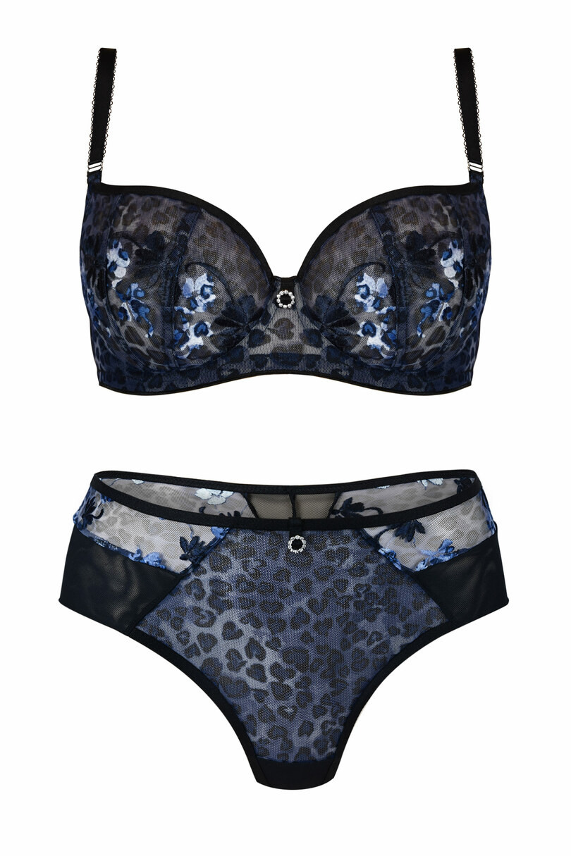 Košíčky modelu jsou vyrobené ze síťoviny s panteřím vzorem a s lesklou květinovou výšivkou. Vnitřní část košíčků je pokrytá tylem.