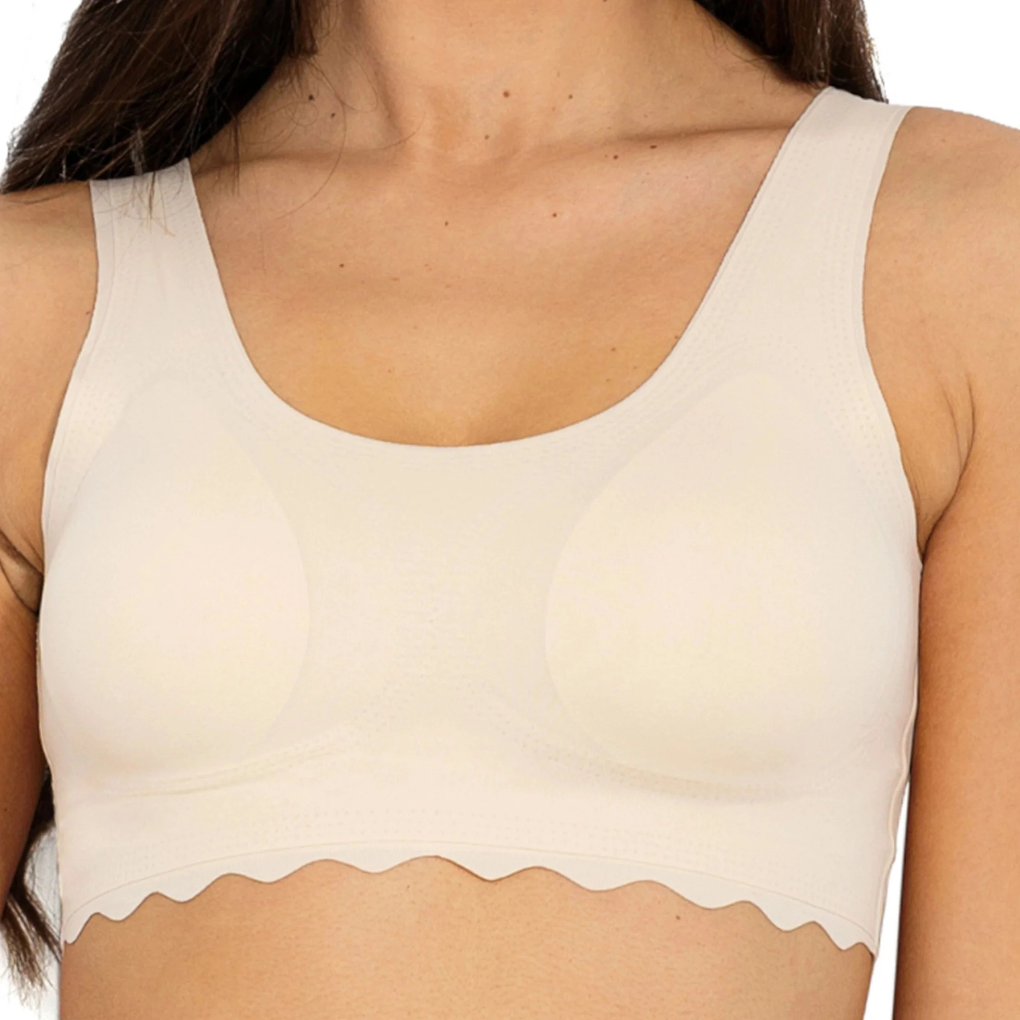 Dámská podprsenka Feel Good beige MITEX - béžová barva - typ braletka - z tenkého bezešvého úpletu - ušité technologií Laser Cut - měkké košíčky - vyjímatelné mírně vyztužené vsadky - vyztužený elastický obvod - bez kostic - široká ramínka - bez zapínání - neviditelné pod oblečením