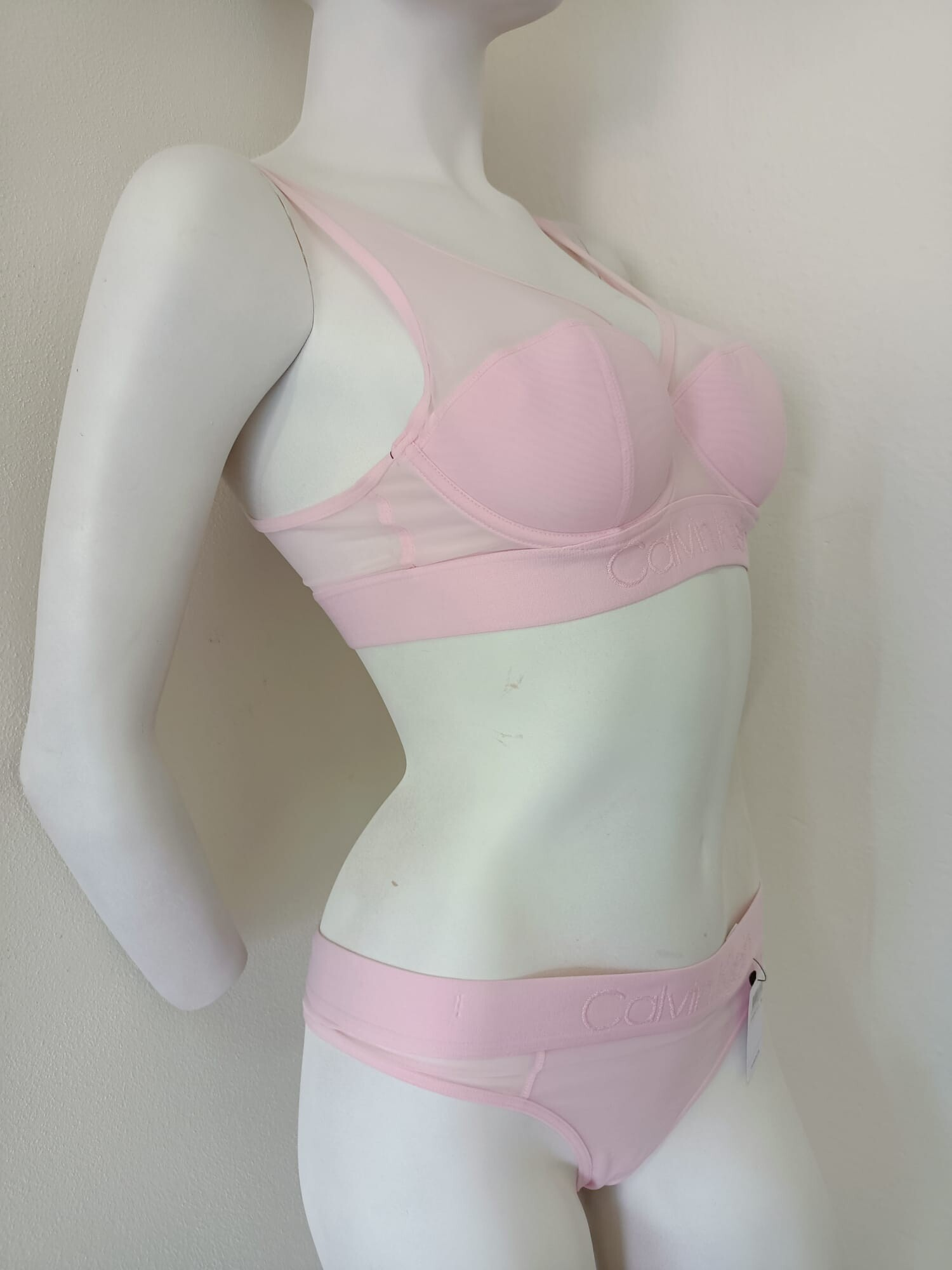 Dámská luxusní podprsenka Calvin Klein.Hladké, jemně vyztužené košíčky s kosticemi jsou potaženy velmi jemným, pružným tylem, který přechází až k ramenům. Ramínka jsou pevně všitá, lehce délkově nastavitelná. Široký obvod je z průsvitného, dvojitě šitého tylu v přední části, který je ukončen ve spodním obvodu pružnou gumou s vyšitým logem značky Calvin Klein v přední části. Zadní zapínání je na dva háčky a tři pozice. Tato podprsenka je dokonalým luxusním a zároveň lehce sportovním kouskem.