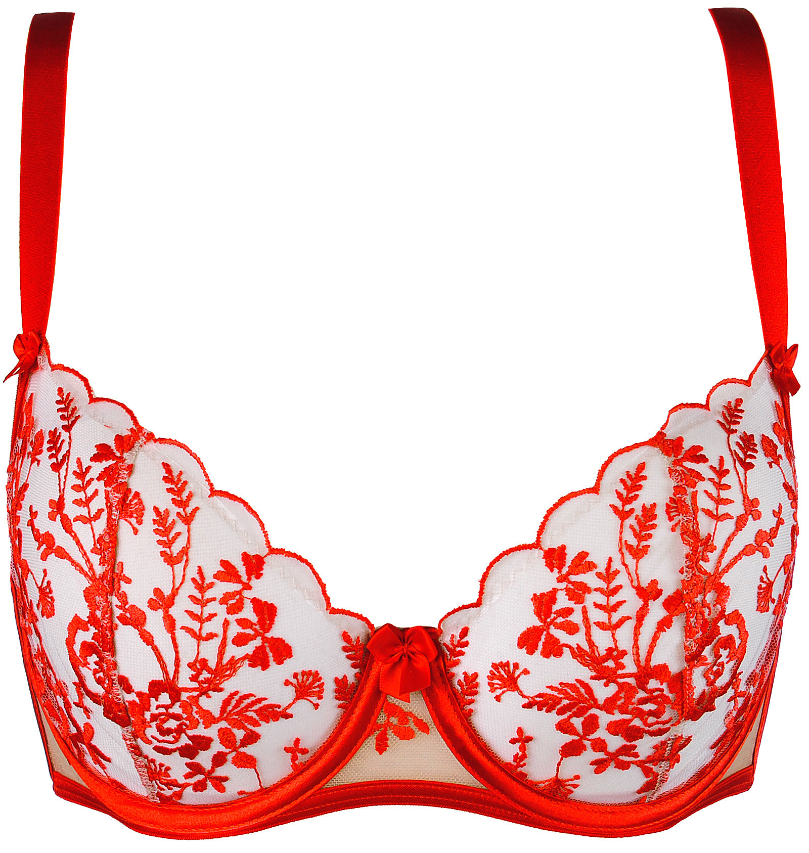 Tato měkká podprsenka, okouzlující jemnou výšivkou, je návrhem pro ženy, které ocení sofistikovaný design a nejkvalitnější látky. Balkonetní střih krásně zdůrazní krásu dekoltu a měkké látky pohladí pokožku. Tento střih je ideální pro větší velikost poprsí, poskytuje ideální pohodlí a rozkošný vzhled. Kombinace béžového pozadí a ženské červené výšivky dodává celku kouzlo.