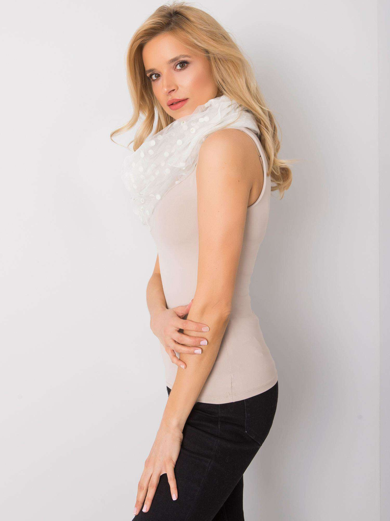 Bílá šála s potiskem hrášku a aplikací.f