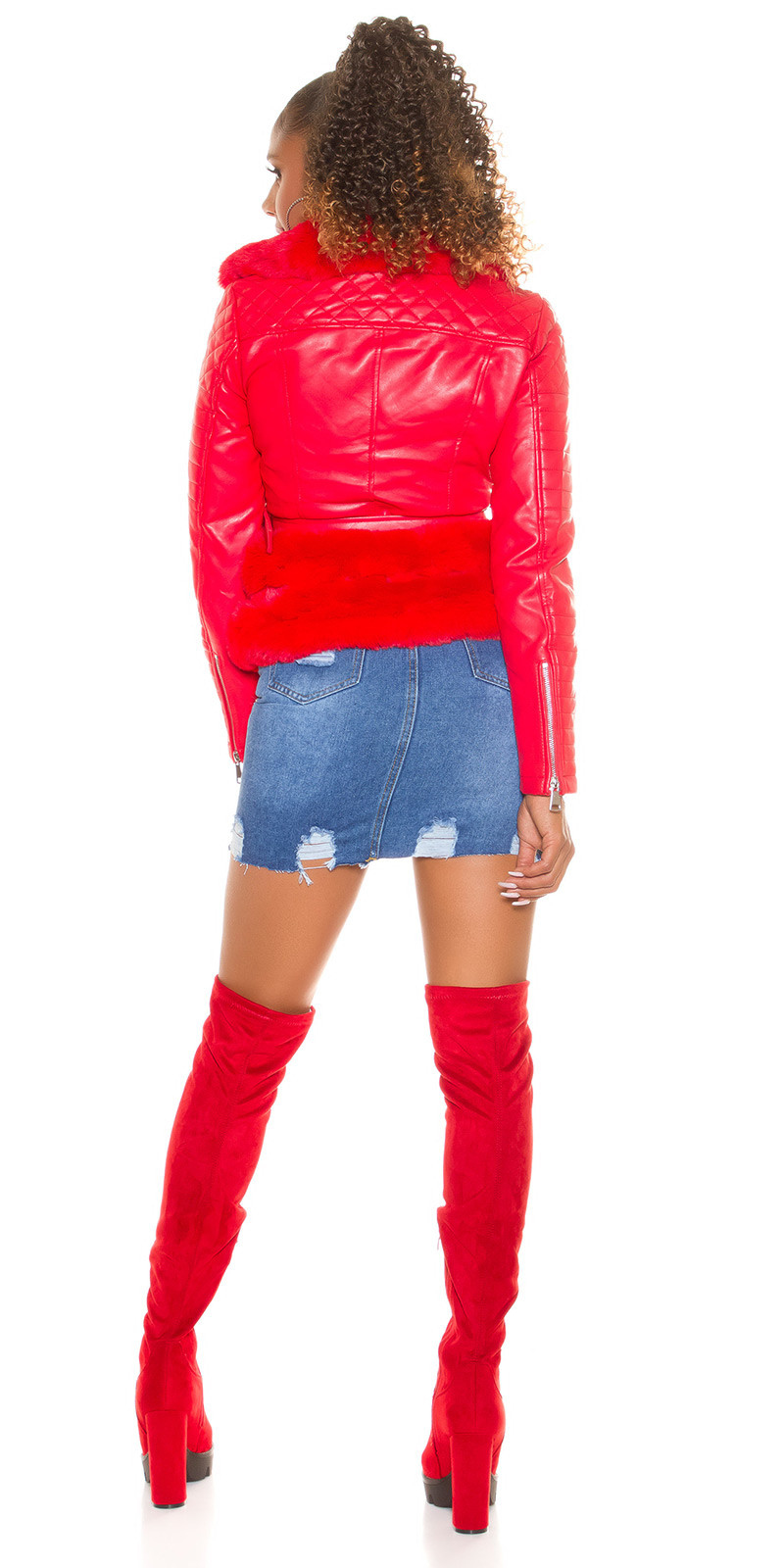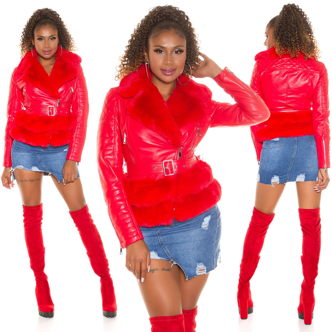 Přidání recenze k Dámská sexy kožená bunda s umělou kožešinou J930 Červená - In-Stylefashion
