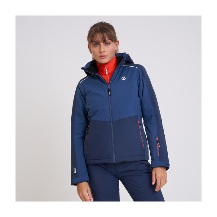 Dámská zimní bunda Dare2b ENCLAVE II je vyrobena z prodyšného, strečového, větruvzdorného a voděodolného materiálu ARED 20 000. Bunda je celorozepínací s pevnou, nastavitelnou kapucí, vyšším límcem a ochranou brady, aby se předešlo nepříjemnému přiskřípnutí. Dále bunda nabízí odnímatelný sněžný pás, který má silikonový pruh po obvodu, díky kterému pás drží na svém místě. Sněhové manžety v rukávech, aby se zamezilo vnikání studeného vzduchu pod bundu, podlepené švy, možnost regulace rukávů za pomoci suchého zipu, nastavitelný spodní lem za pomoci zdrhovadla. Na přední straně najdete dvě hlavní kapsy na zip, kapsu na skipass, jednu vnitřní bezpečnostní kapsu, vnitřní meshovou kapsu na brýle.