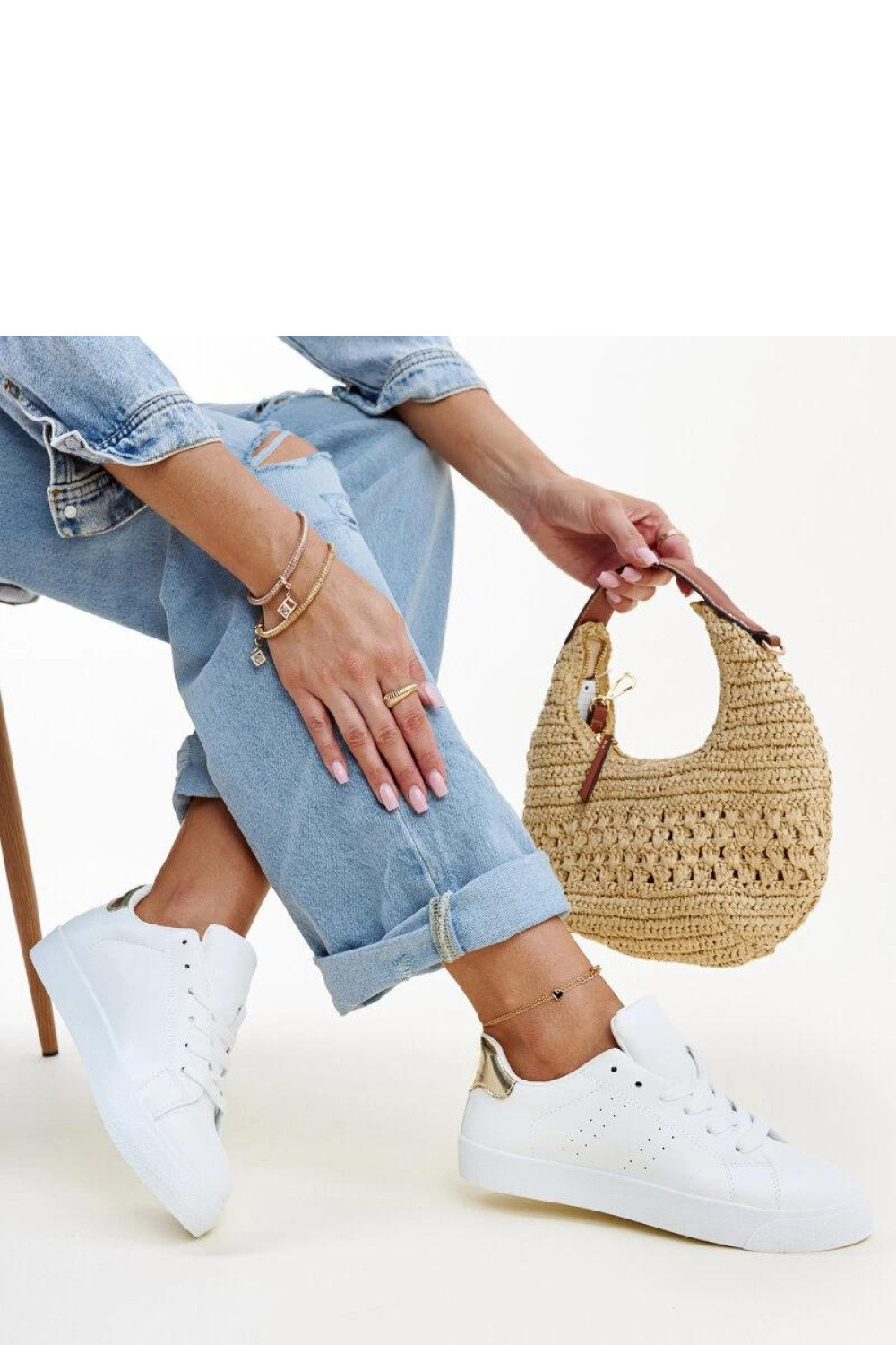 Bílé tenisky Akila ve zlaté barvě jsou inovativním návrhem obuvi, který okouzluje svým unikátním designem. S šněrováním, nízké a s kulatou špičkou jsou ideální volbou pro ty, kteří ocení moderní styl a pohodlí nošení. Vyrobené z vysoce kvalitní gumy, zaručují trvanlivost a pohodlí po mnoho sezón. Díky svým unikátním bílým a zlatým barvám jsou tyto tenisky skvělým doplňkem každého každodenního outfitu. Vnější materiál: Ekologická semišová kůže Izolace: žádná Materiál podrážky: Guma Barva podrážky: Bílá Uzavírání: Na šněrování Kolekce: Jaro/Léto