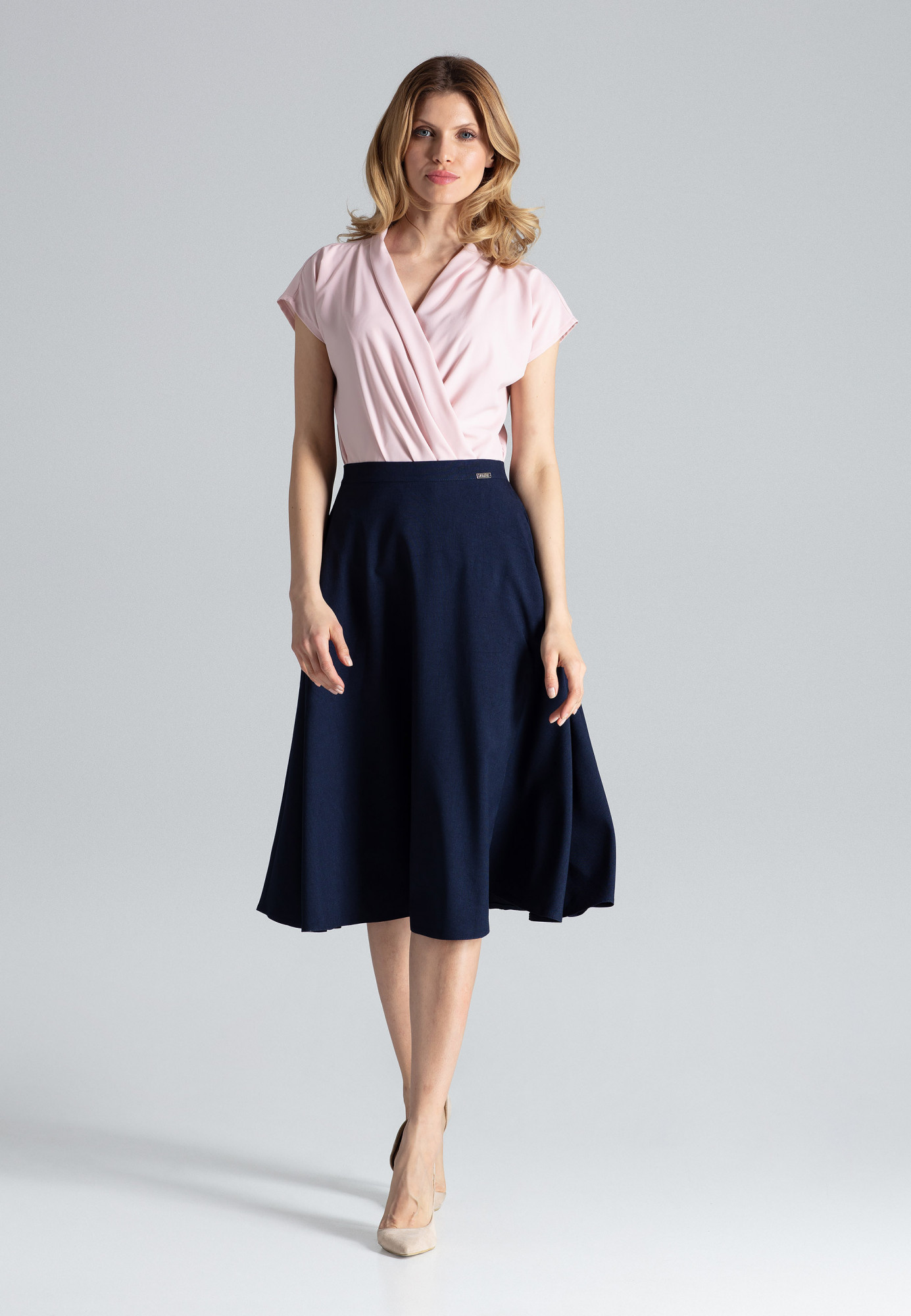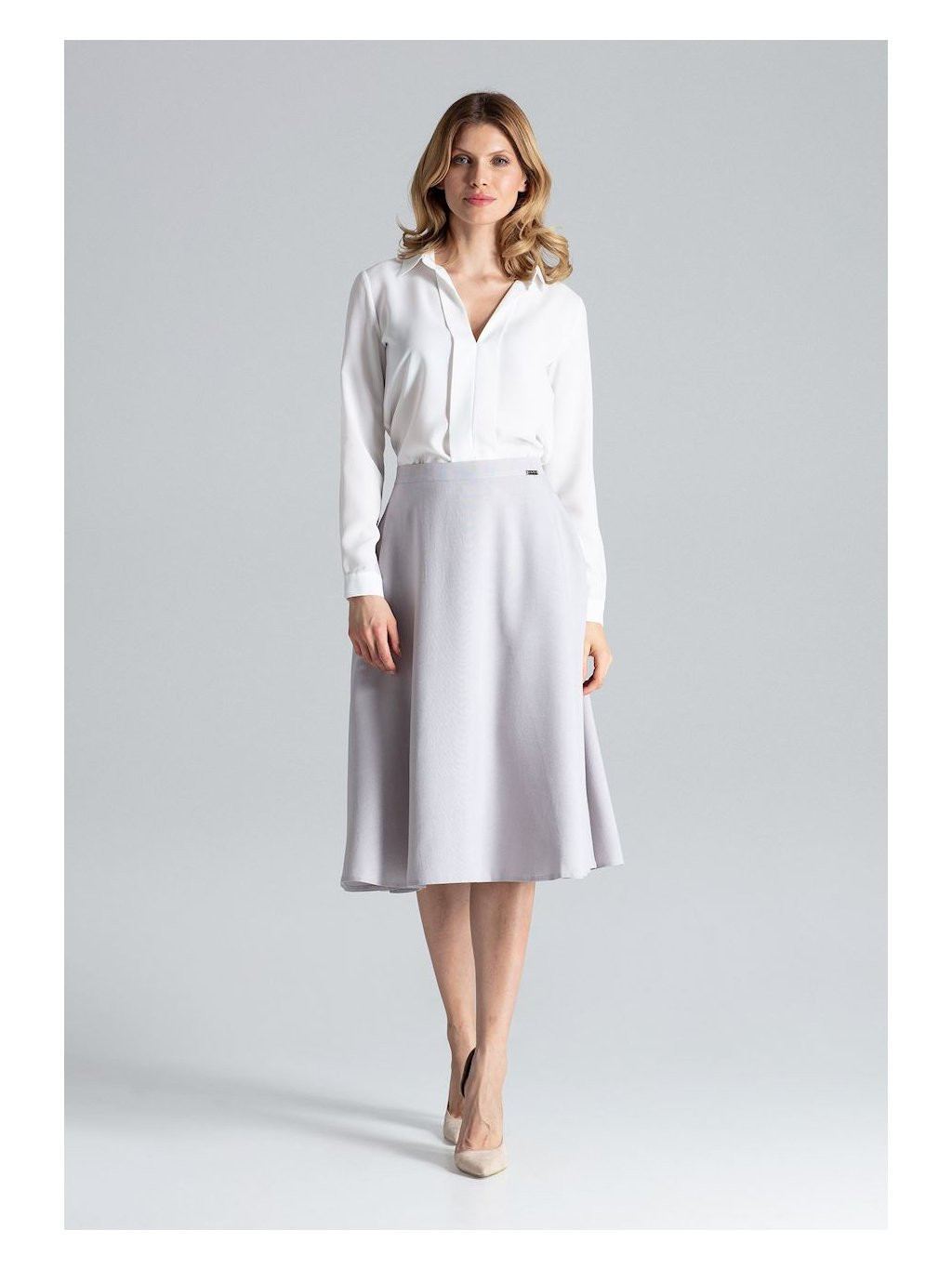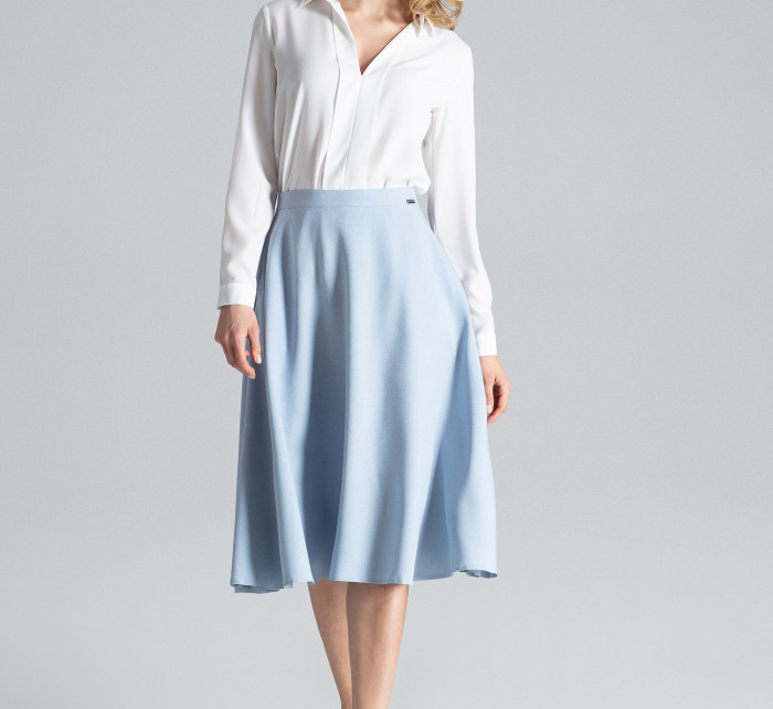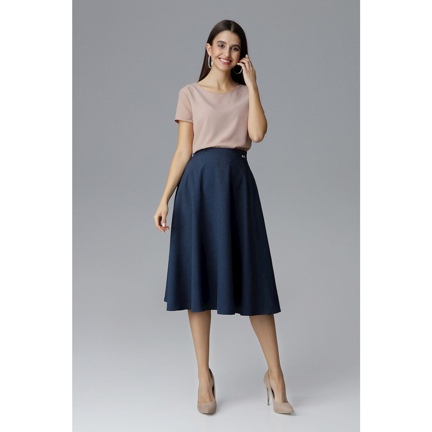 Pásek, rozšířená sukně se skrytým zipem na zádech. Krásně se kombinují s kozačkami nebo lodičkami na jehlovém podpatku.