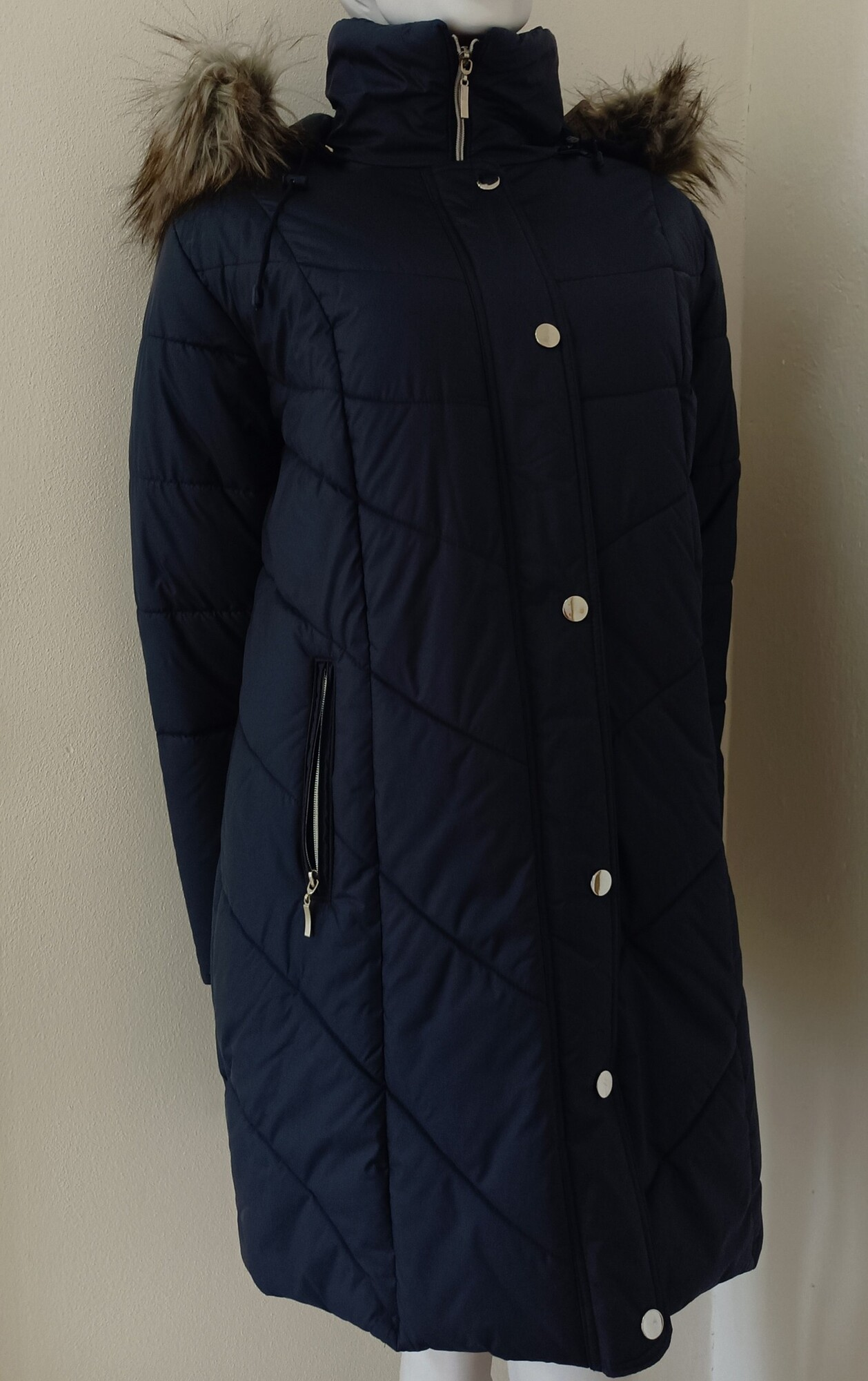 Produkt Dámská zimní bunda s kapucí M49409 - Zaks prodáváme v těchto velikostech: 50, 52a barvách tmavě modrá