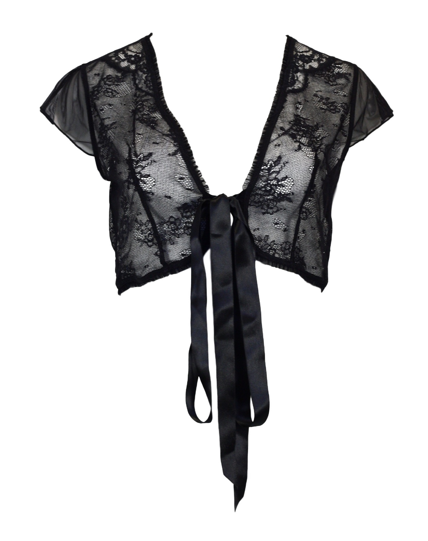 Dámské bolerko značky Antinea s krátkými rukávky, na zavázání, je celé z průsvitného materiálu, které se skvěle hodí na šaty či top bez rukávků. Materiál:75% polyamid, 25% elastan
