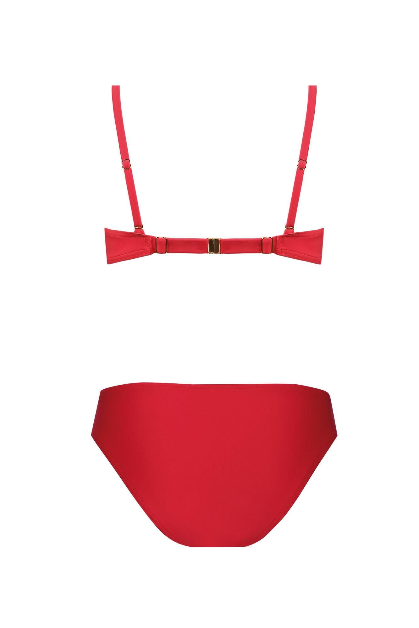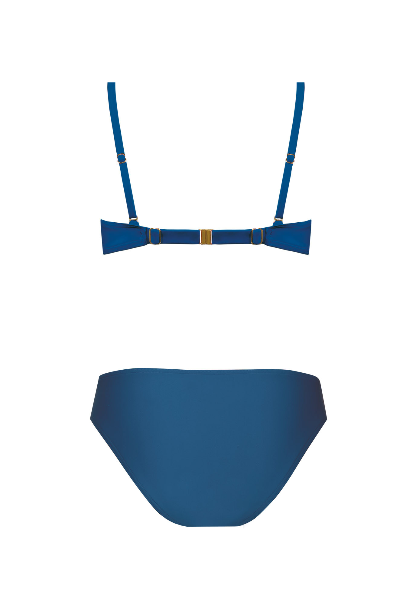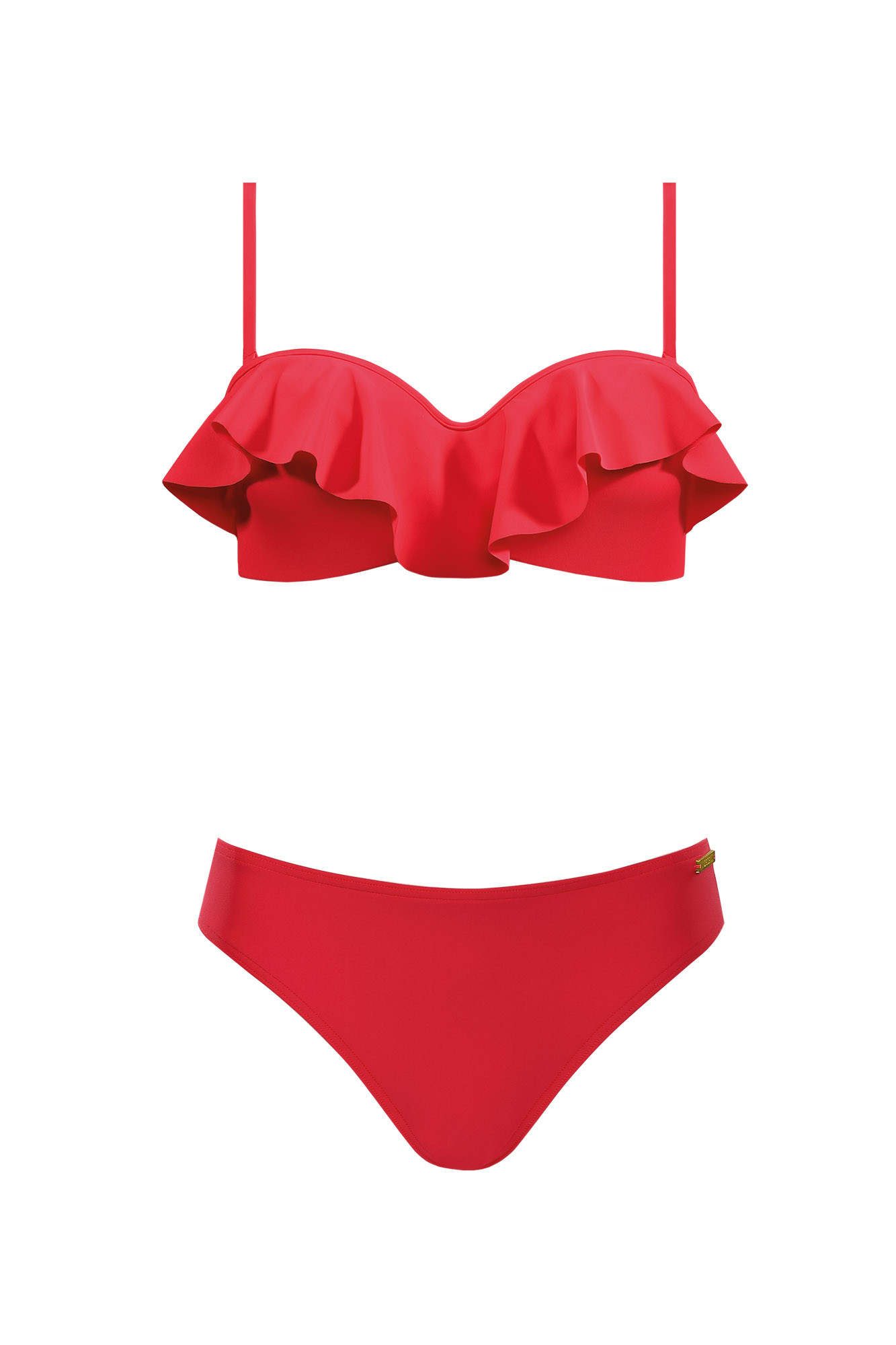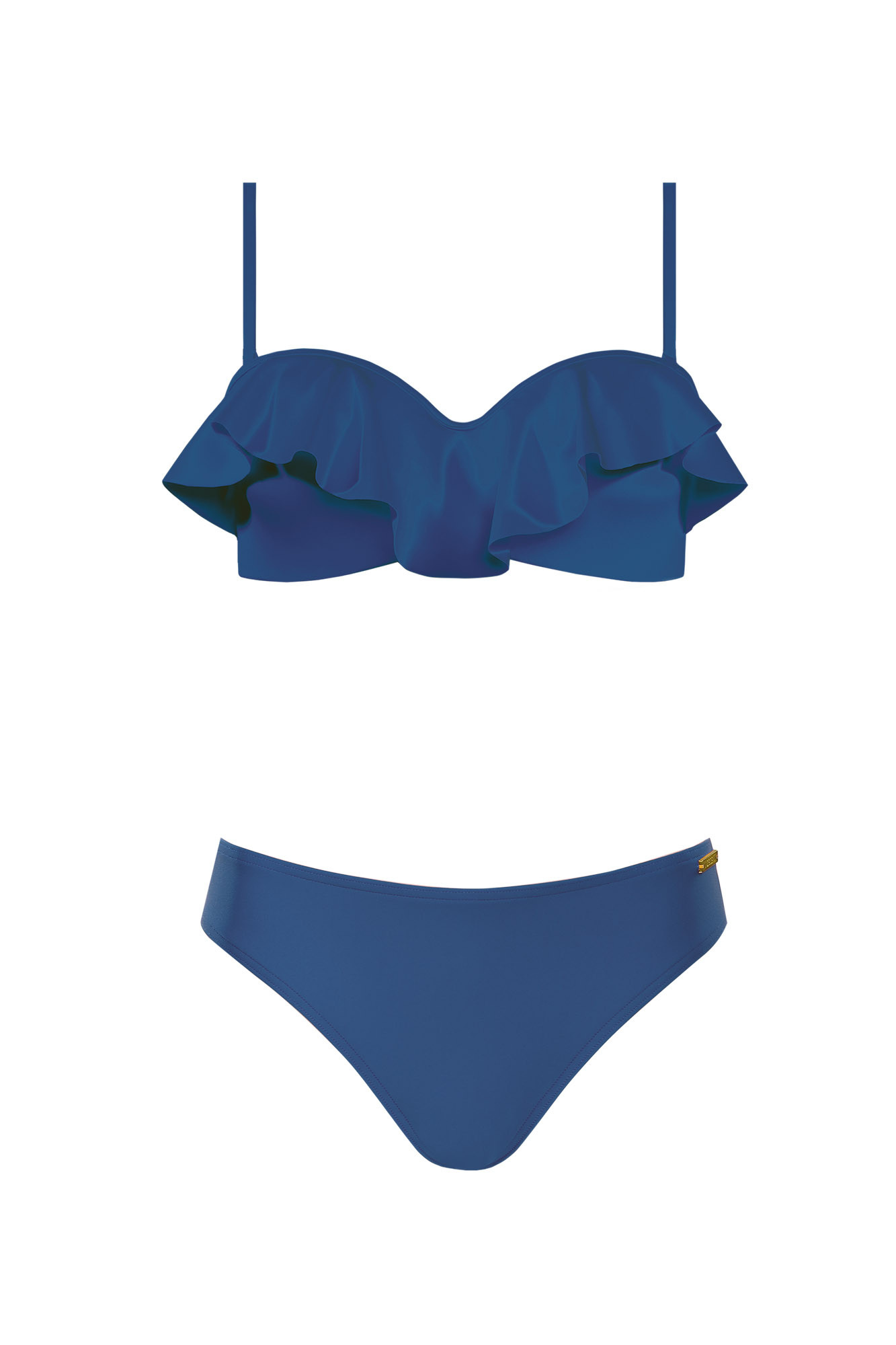 Dámské dvojdílné plavky značky Self. Vrchní díl je vyztužený kosticí spolu s nastavitelnými ramínky. Ozdobený je volánkem.