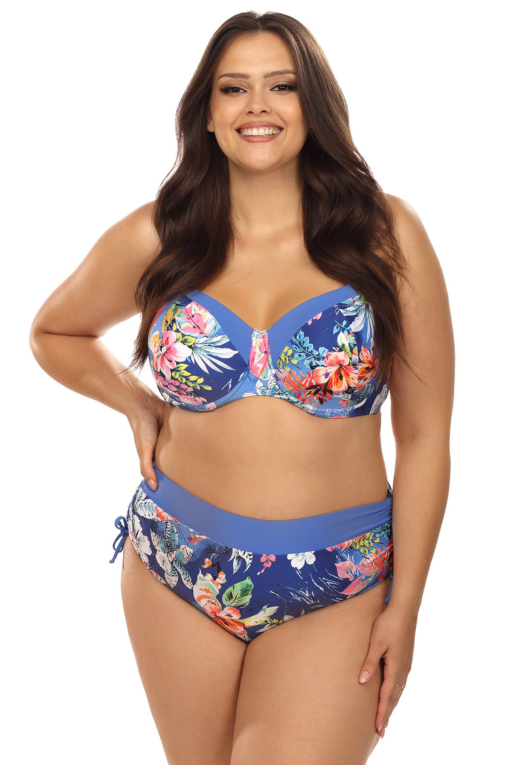 Podprsenka dokonale podpírá a tvaruje velká prsa. Vysoké spodní kalhotky maskující nedostatky v oblasti břicha a boků. Na bocích kalhot umožňují snížit nebo vyhrnout boky kalhotek.