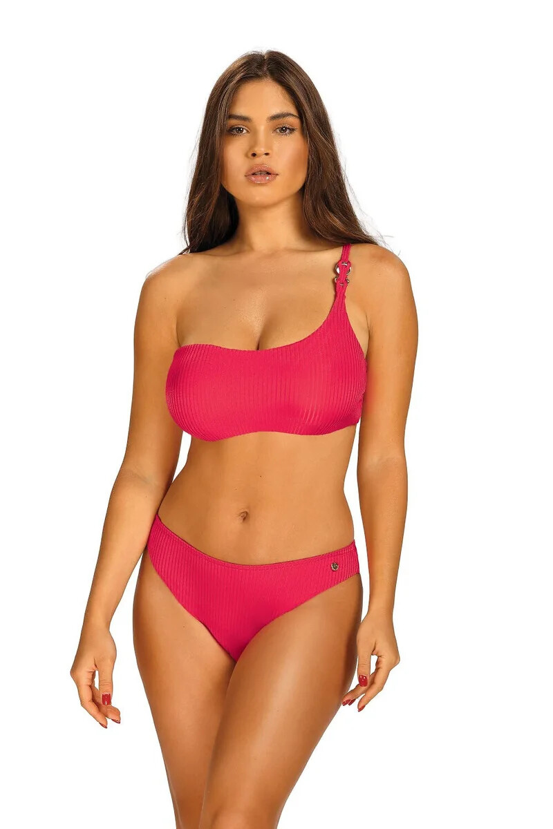 Dvoudílné plavky - podprsenka s kosticí - košíčky s tenkými vyjímatelnými houbičkami - jedno rameno - jemně pruhovaný úplet - kalhotky klasického střihu Složení: 78% polyamid, 22% elastan