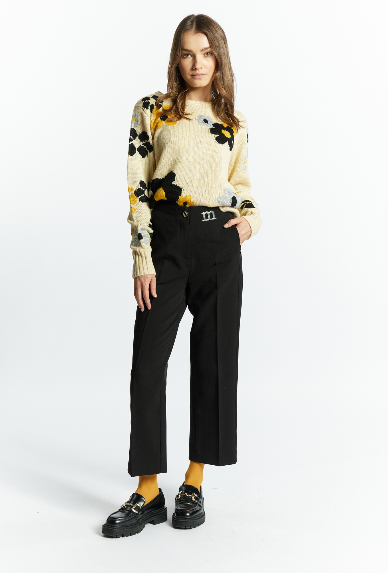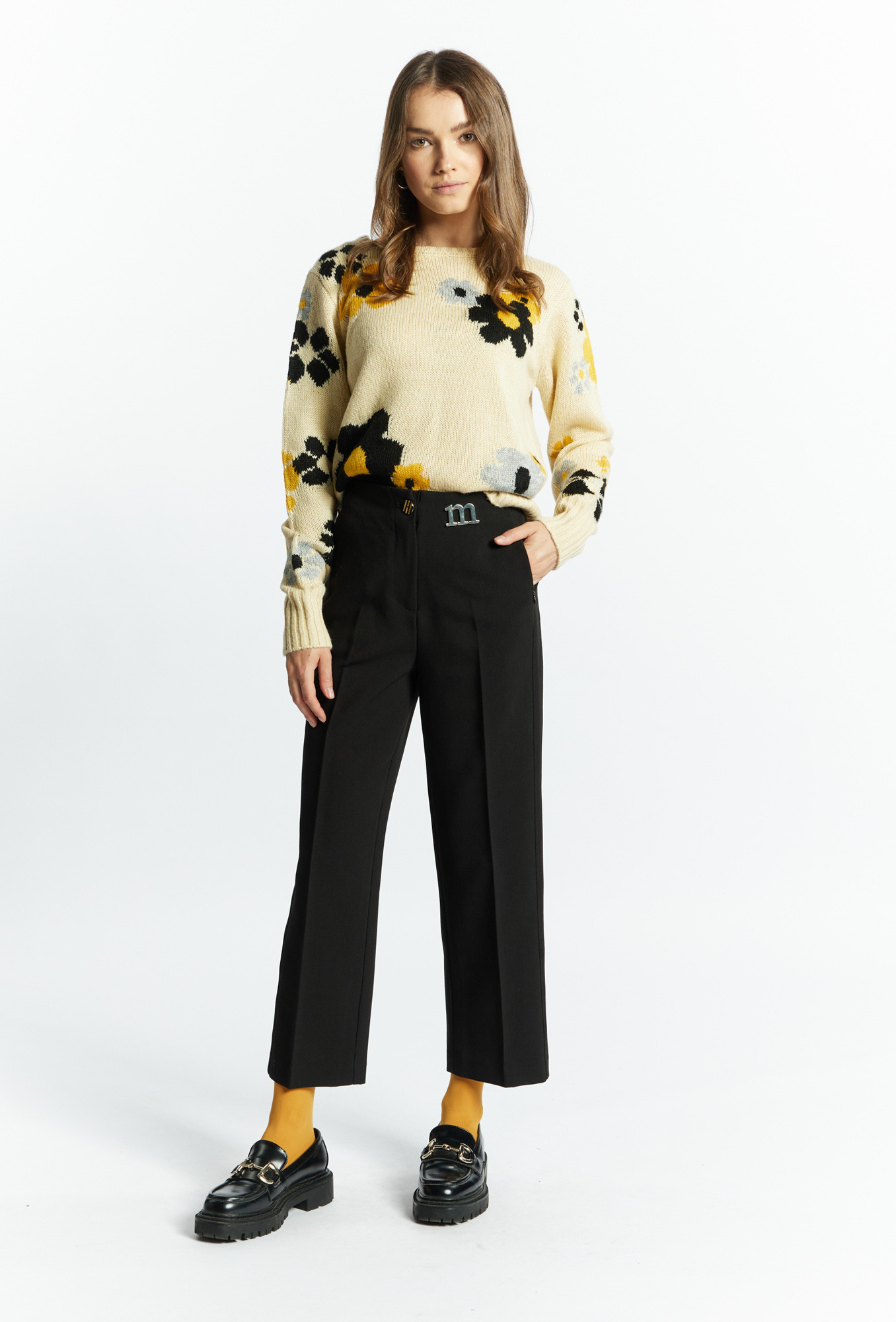 Elegantní dámské kalhoty s logem Monnari. Kalhoty o délce 7/8 s rovnou nohavicí se zapínají na zip a knoflík. Kalhoty s krytými kapsami se zapínáním na zip. Ke kalhotám doporučujeme zvolit klasickou bílou halenku. Modelka na obrázku je 177 cm vysoká a má velikost 36.