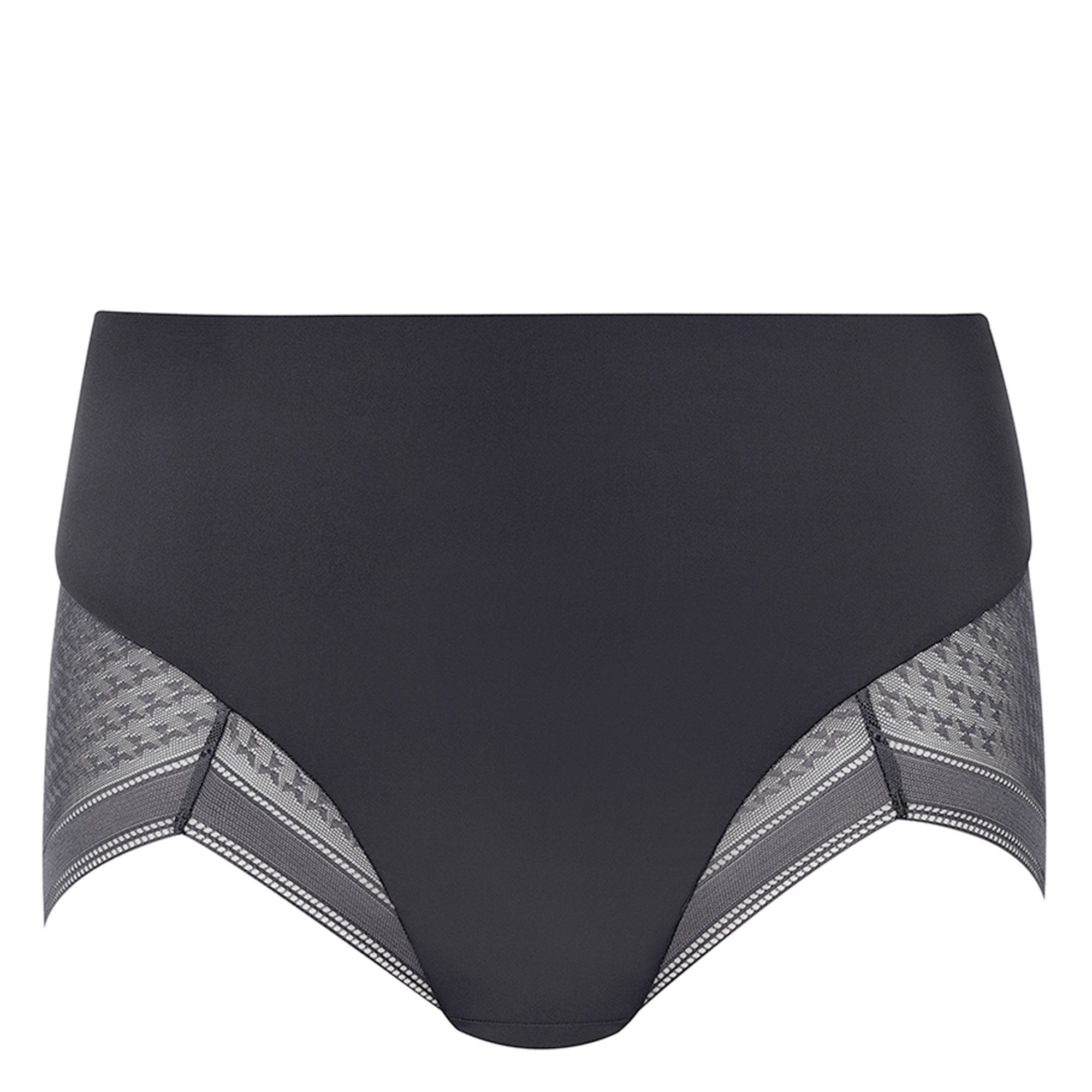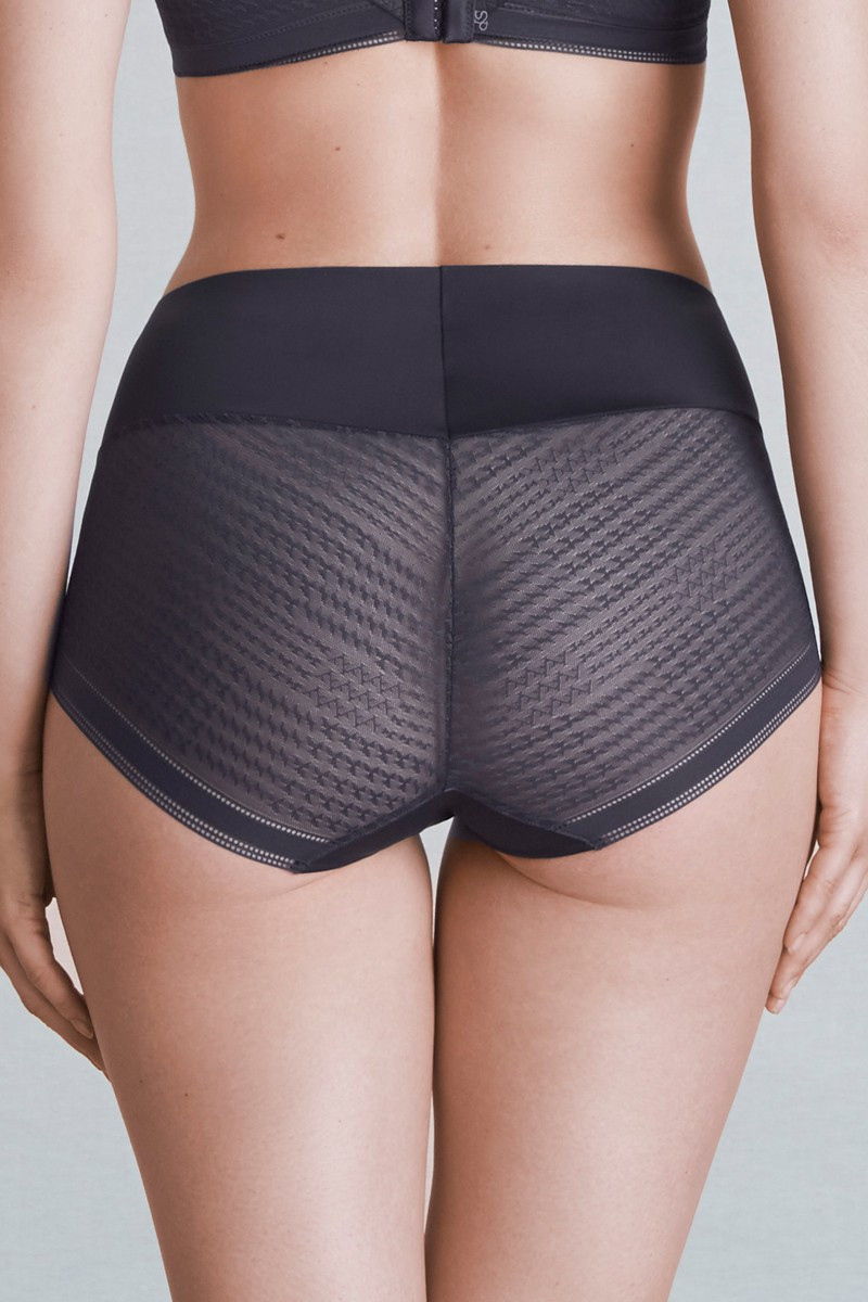 Kalhotky jsou vyšší, končí pod pupíkem. Na předním díle je použit zdvojený materiál pro formující efekt.