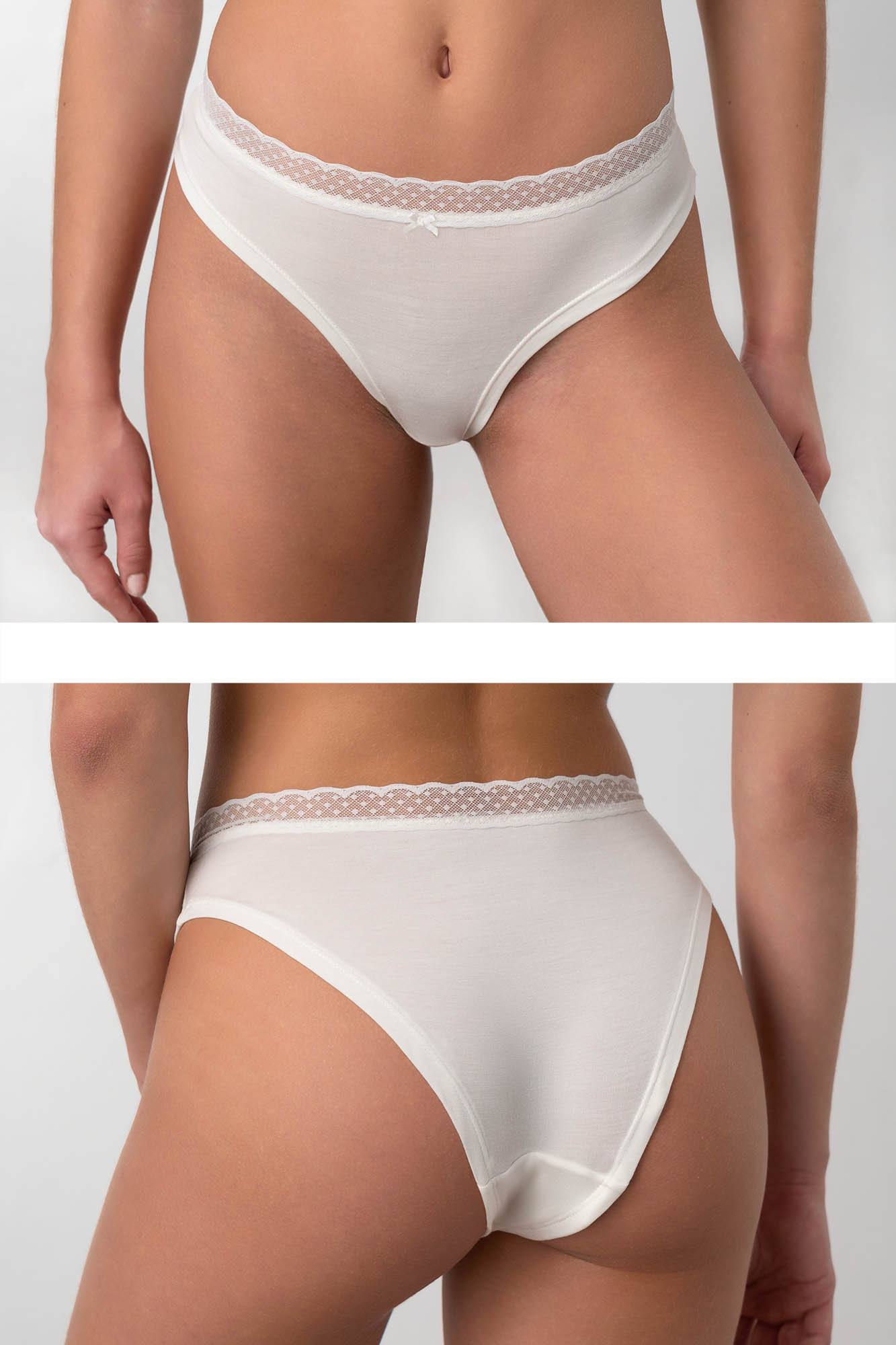 Pohodlné jednobarevné dámské kalhotky s krajkou, které jsou vyrobené z vysoce kvalitního Micro-modalu s příměsí Elastanu. Přírodní Micro-modal poskytuje vyjímečnou měkkost, lehkost a pohodlí, je prodyšný, při praní se nesráží, dobře absorbuje pot a rychle schne, zatímco Elastan dodává oděvu potřebnou pružnost.