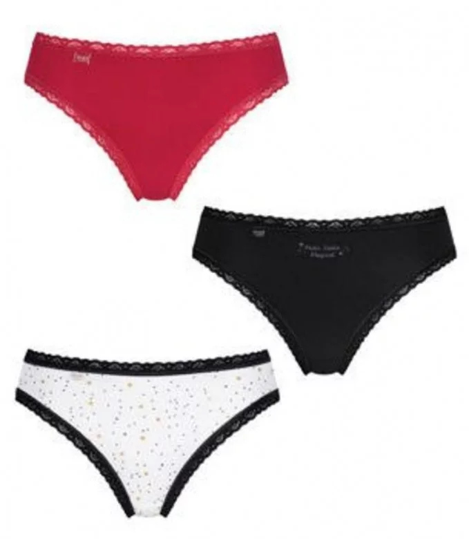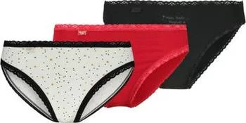 Dámské bavlněné kalhotky 3 ks v balení v barvách černé, červené a bílé s potiskem.