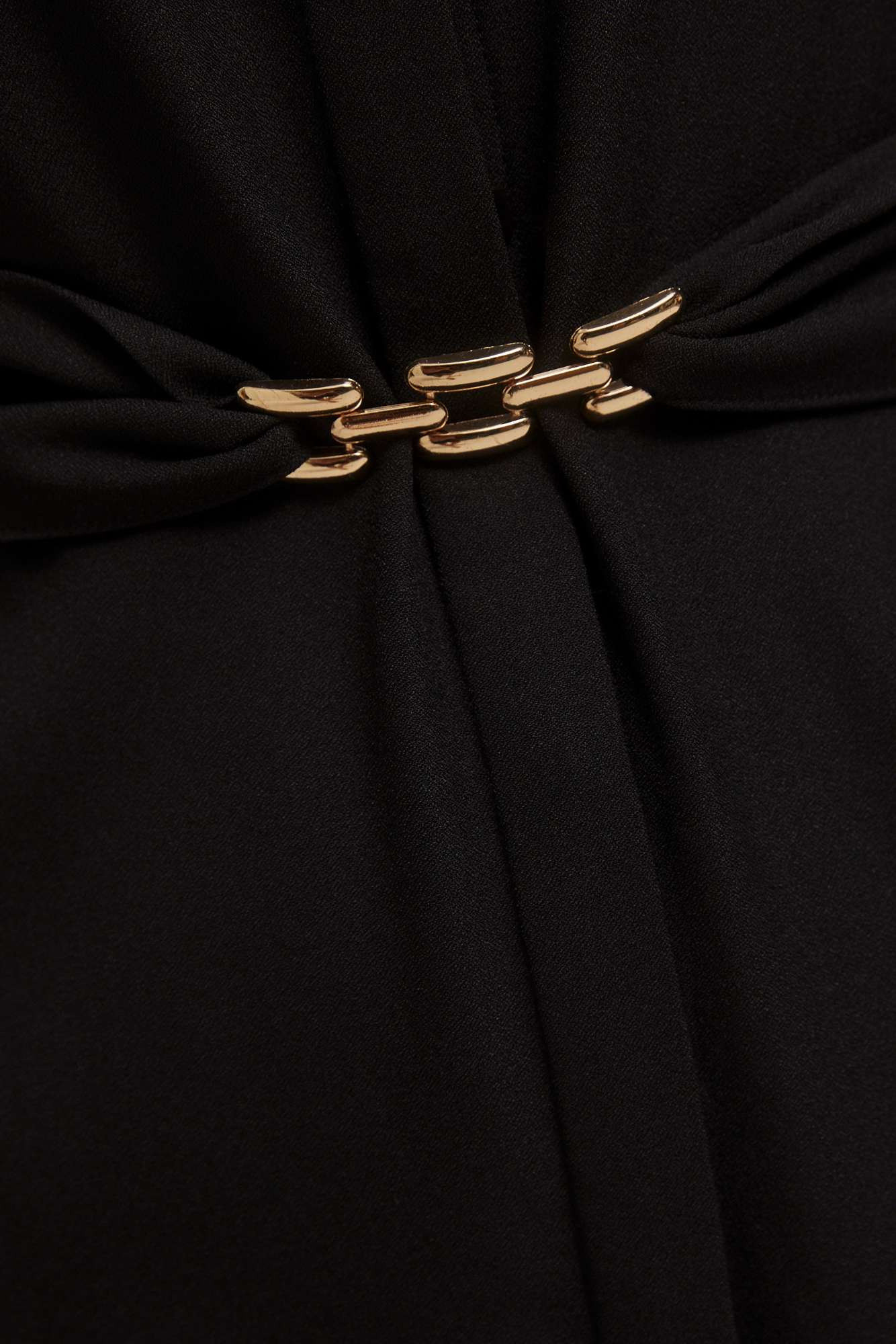Černé šaty bez vzoru jsou perfektním doplňkem vašeho šatníku. Vyrobeno z vysoce kvalitního polyesteru, zaručuje pohodlí a odolnost. Díky pásku v pase šaty krásně zvýrazní ženskou postavu. Límec a knoflíky dodávají eleganci a třídu. Díky klasickému střihu a rozšířenému střihu se hodí jak pro zvláštní příležitosti, tak do práce. Šaty sahají do půli stehen, což jim dodává jemné kouzlo.