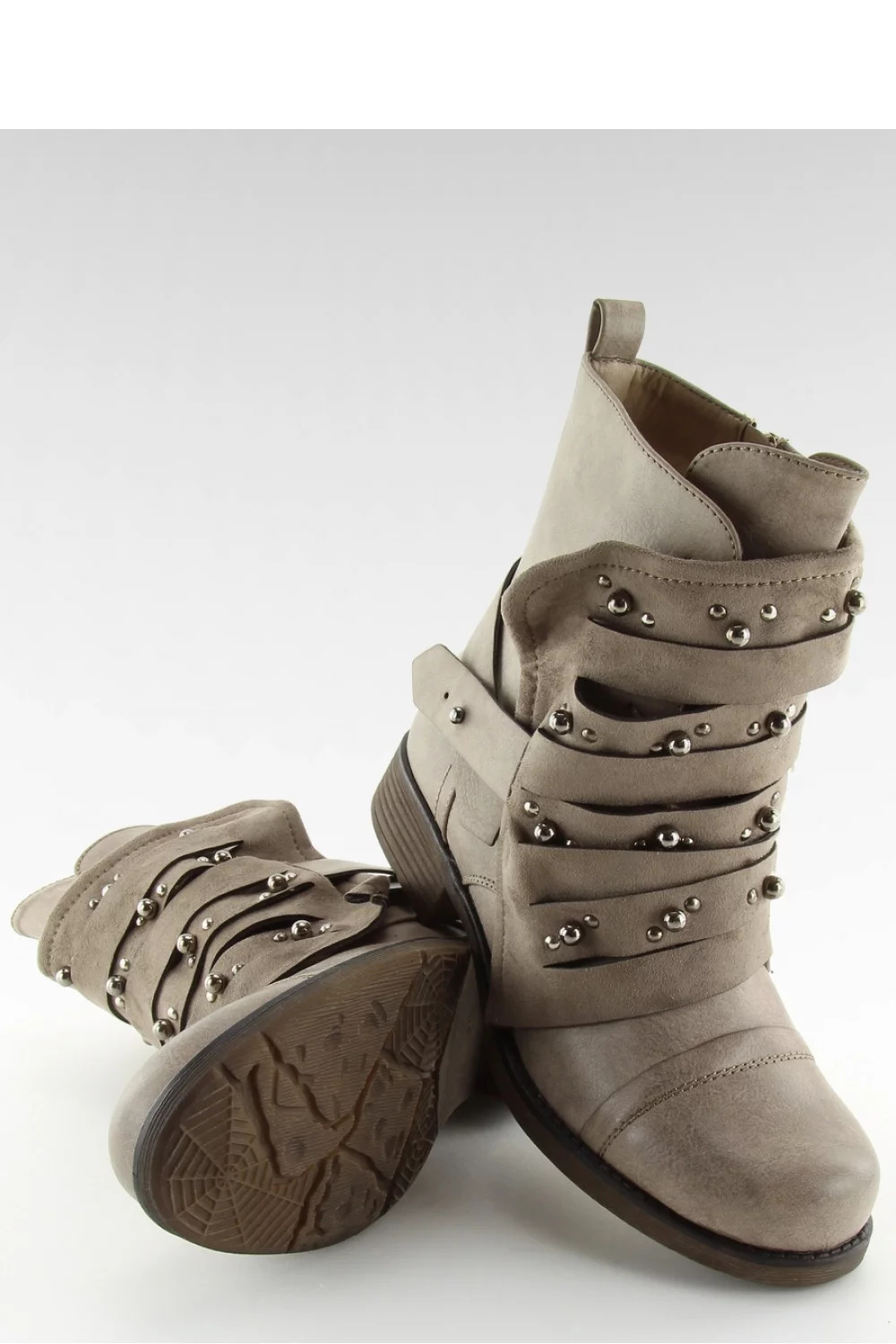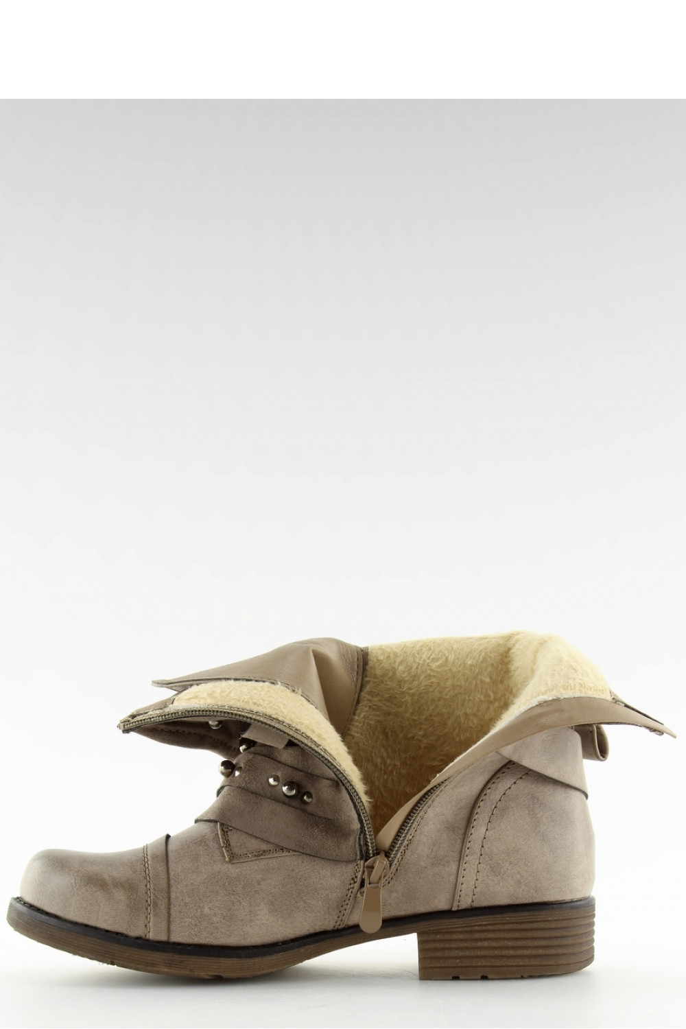 Kultovní dámské boty - bagers. Boty mají nejmódnější límec sezóny zdobený stříbrnými cvočky na svršku. Skutečná hvězda musí zazářit! Originální kombinace ekologické kůže a ekologického semiše (límec) přitahuje pozornost... Nemusíte se bát o pohodlí ? je zajištěn plochým podpatkem a pohodlným kulatým nártem a nazouvání pantoflí je snadné díky zipu na boku svršku. Oteplování - měkká kožešina.