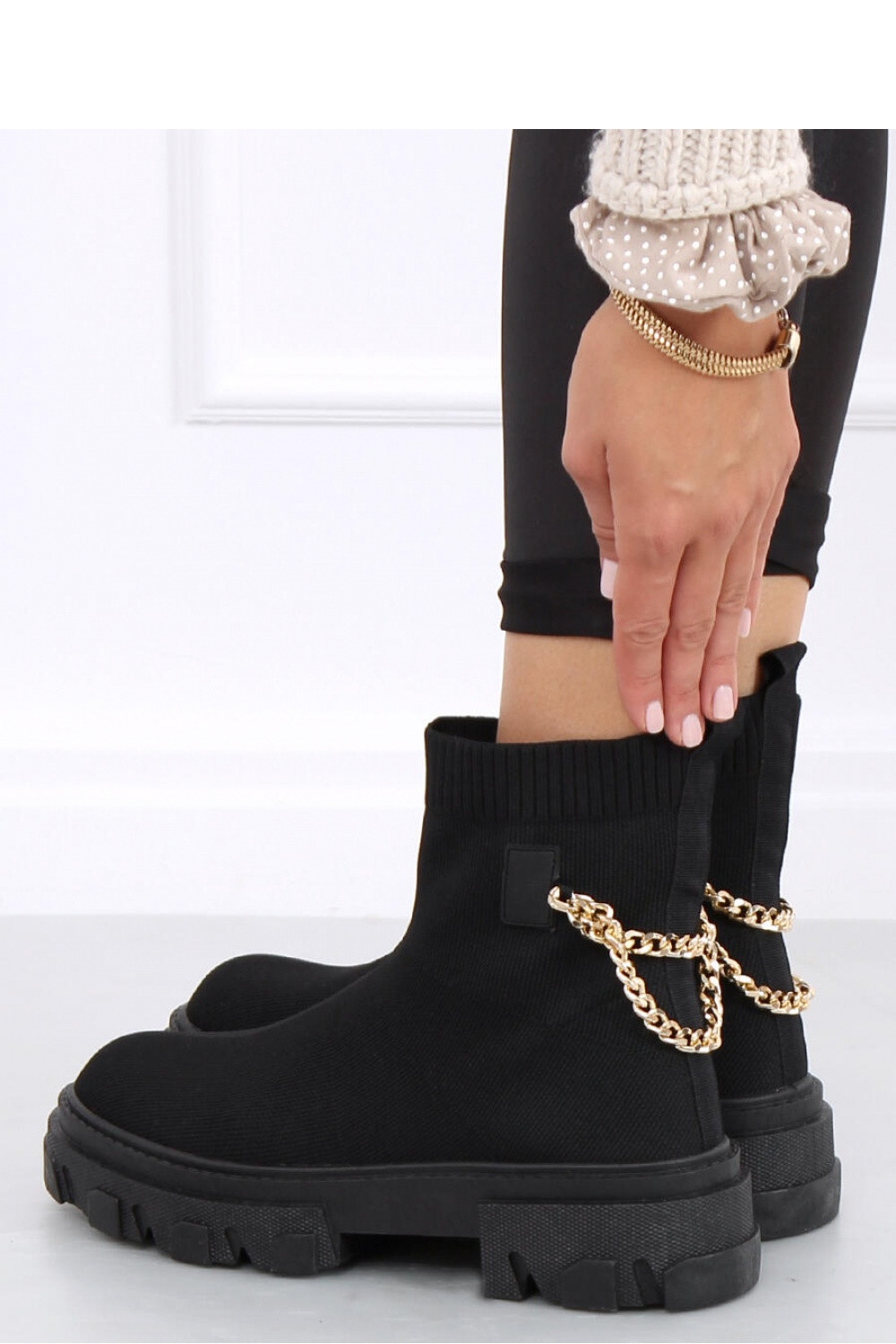 Dámské boty na širokém 5cm podpatku. Tento trendy střih na vysoké podrážce je naprostým must have sezóny! Jsou vyrobeny z látky podobné ponožkám, díky čemuž dokonale přiléhají k noze. Zlatý řetízek na zadní straně je stylovou tečkou celého designu... Model bez izolátoru. Vnější materiál - tkanina. Uvedená délka stélky je délka chodidla, na které se hodí daná velikost. Materiál - textil Hřejivá podšívka - bez hřejivé podšívky