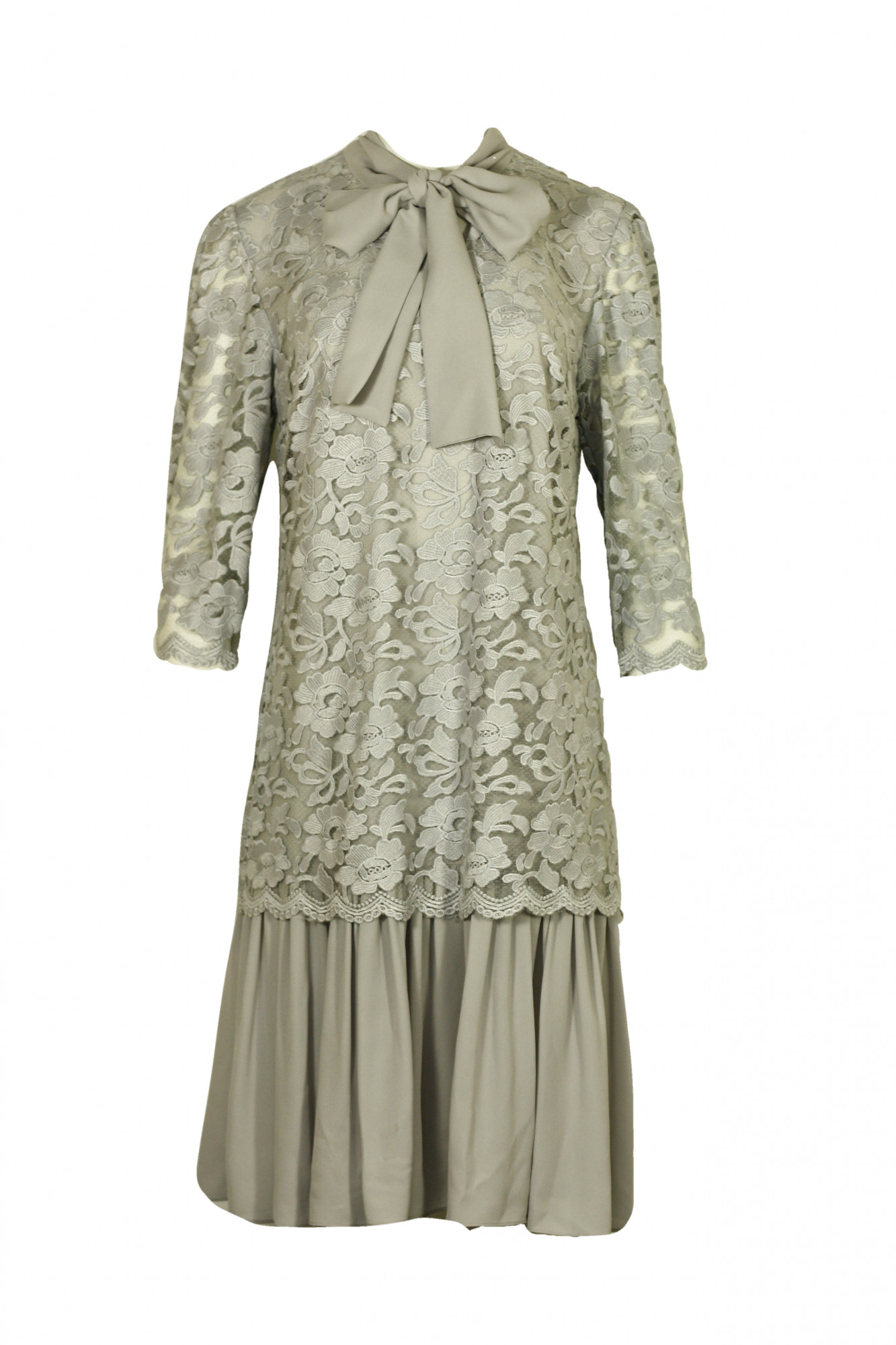 Dámské krajkované šaty s vázačkou a volánem - 0220M18 Glam