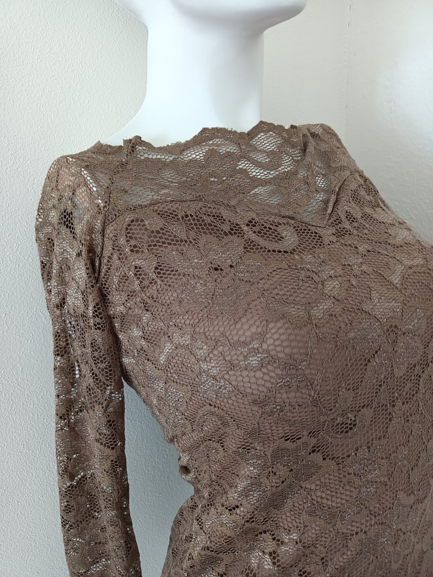 Dámské krajkové šaty 91141 hnědé - Koucla