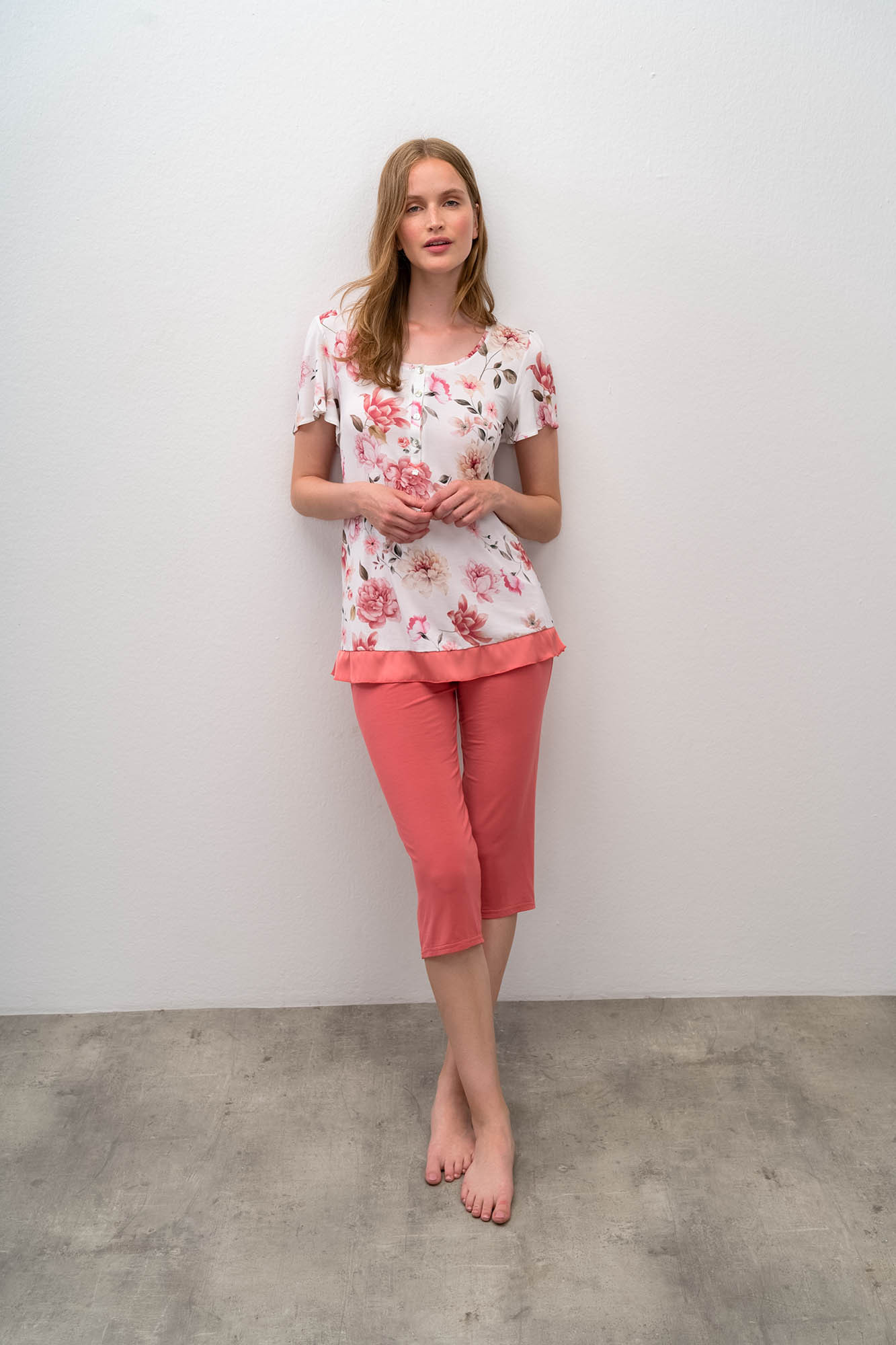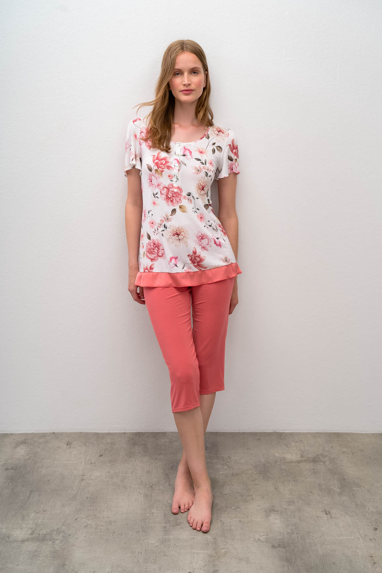 Produkt Dámské krátké pyžamo 16047 - Vamp prodáváme v těchto velikostech: Sa barvách smetanová s červenou