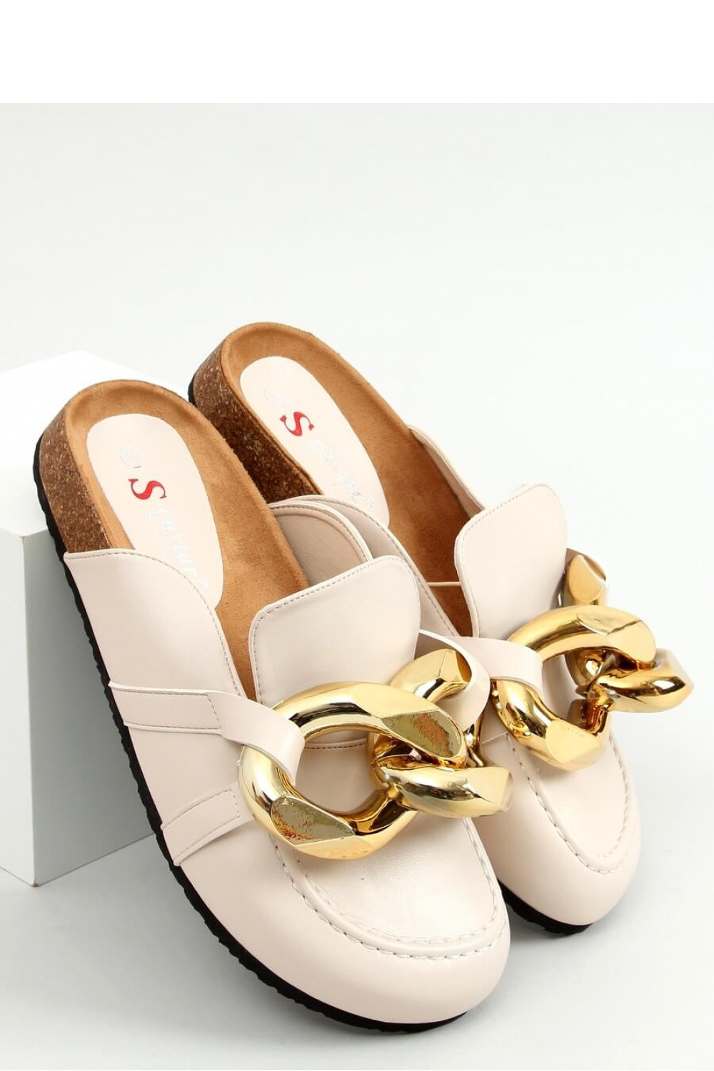 Značkové dámské žabky na korkové podrážce. Milujete módní a extravagantní obuv, ale nebyli jste si jisti, zda je pro vás? Tento model s tlustým řetězem je naprostým must have této sezóny! Určitě je máš ve skříni : ) Jsou vyrobeny z ekologické kůže. Vnitřní podšívka - tkanina.