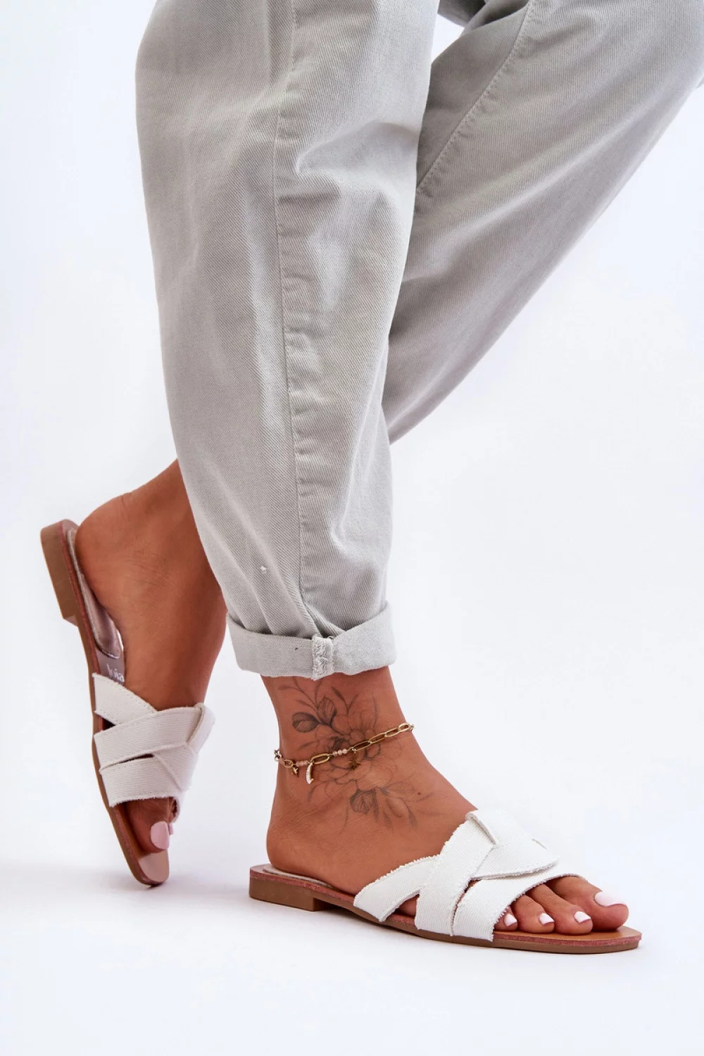 Dámské žabky na plochém podpatku s gumovou protiskluzovou podrážkou se skvěle hodí na každodenní nošení. Svršek je vyroben z textilního materiálu, zatímco stélka je vyrobena z kombinace plastu a materiálu. Tento klasický model se vyznačuje propletenými pásky. Tento model zajistí vysoký komfort i v těch nejteplejších dnech!