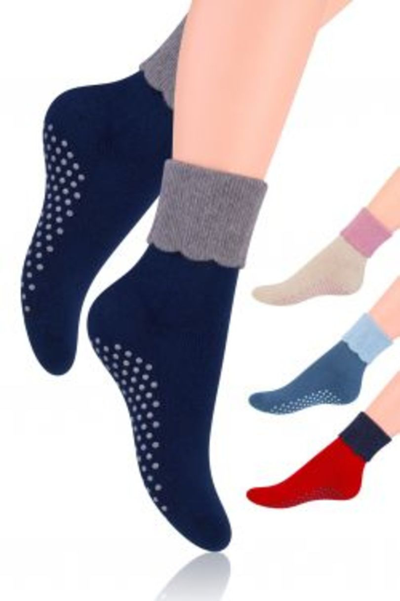 Protiskluzové dámské froté ponožky s vyhrnutým lemem.